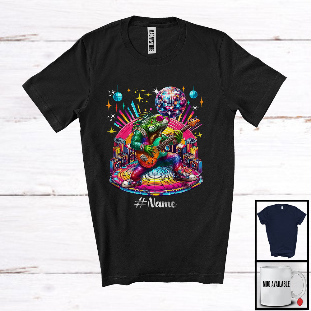 Personalized Disco Iguana Playing Guitar; Joyful Custom Name Guitarist Iguana; Music Lover T-Shirt