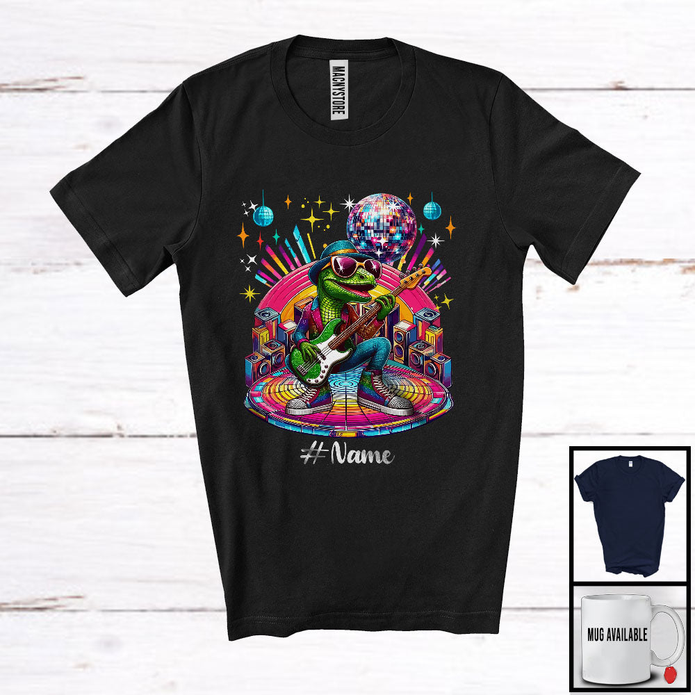 Personalized Disco Lizard Playing Guitar; Joyful Custom Name Guitarist Lizard; Music Lover T-Shirt