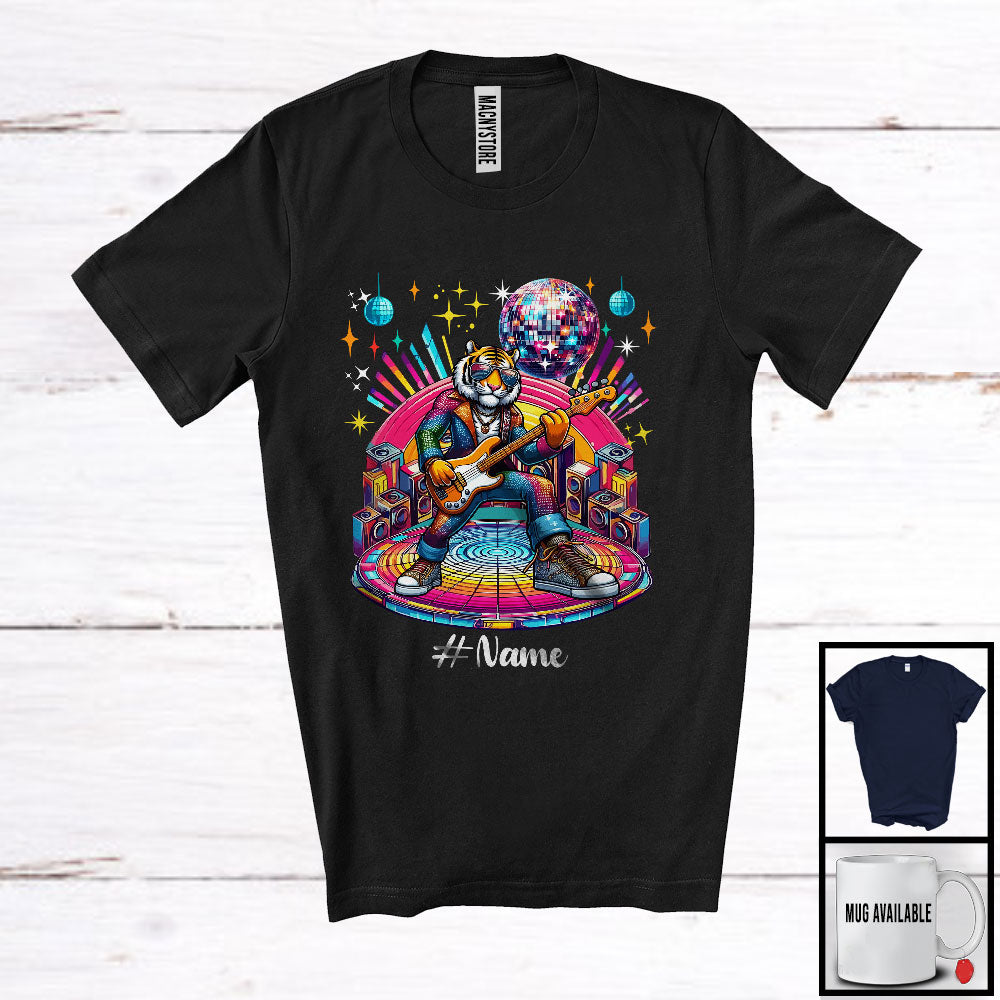Personalized Disco Tiger Playing Guitar; Joyful Custom Name Guitarist Tiger; Music Lover T-Shirt