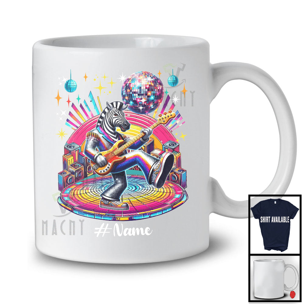Personalized Disco Zebra Playing Guitar; Joyful Custom Name Guitarist Zebra; Music Lover T-Shirt