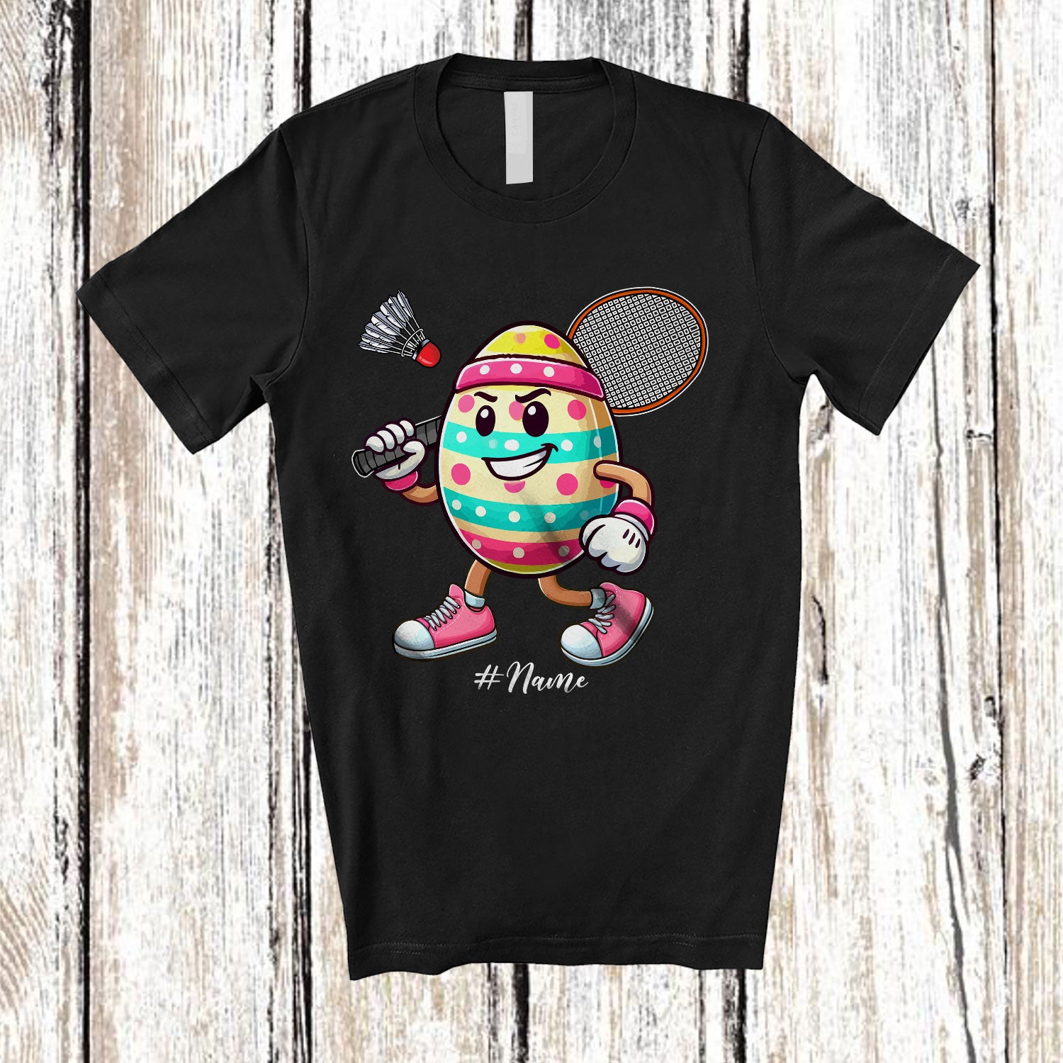 Personalized Easter Egg Playing Badminton; Fantastic Easter Custom Name Sport Player; Family T-Shirt