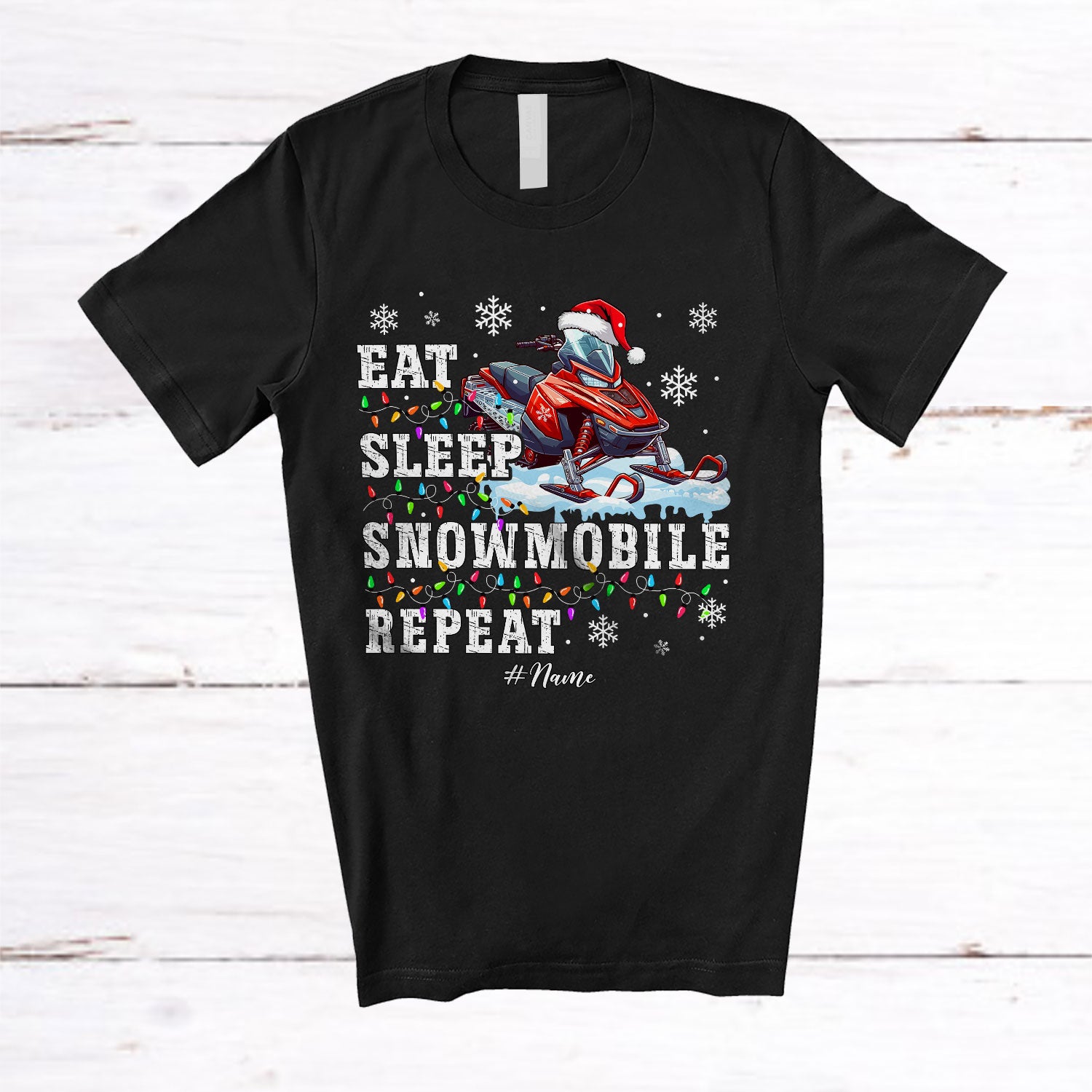 Personalized Eat Sleep Snowmobile Repeat; Amazing Christmas Custom Name Santa Snowmobile Helmet Player T-Shirt