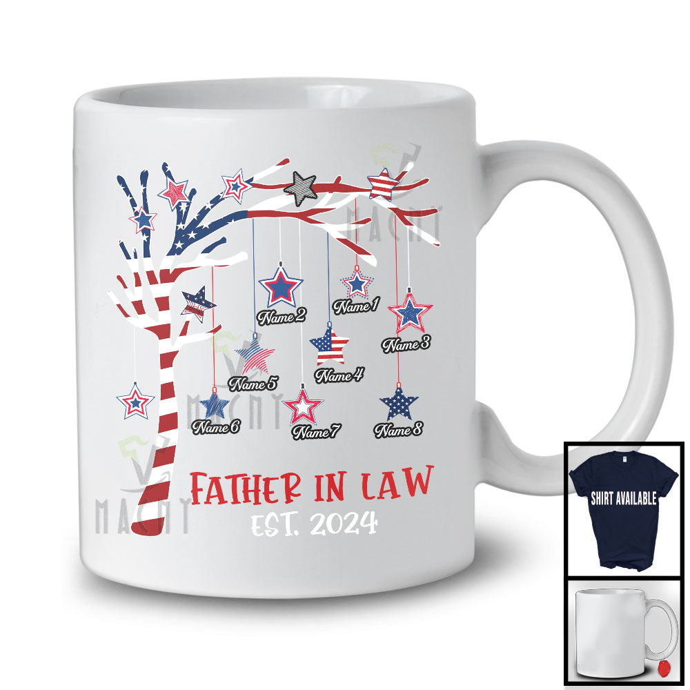 • Personalized Father in law Est 2024, Lovely 4th Of July Custom Name Son Daughter On Tree, Family Patriotic T-Shirt. This cotton t-shirt is a durable staple product with a classic fit. One of the most popular items, it has a relaxed style made for everyday and casual wear.