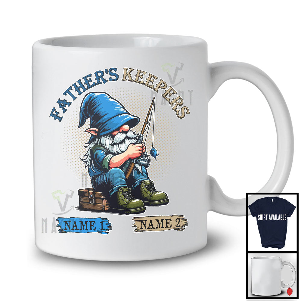 Personalized Father's Keepers, Lovely Father's Day Fishing Gnome, Custom 2 Name Family T-Shirt
