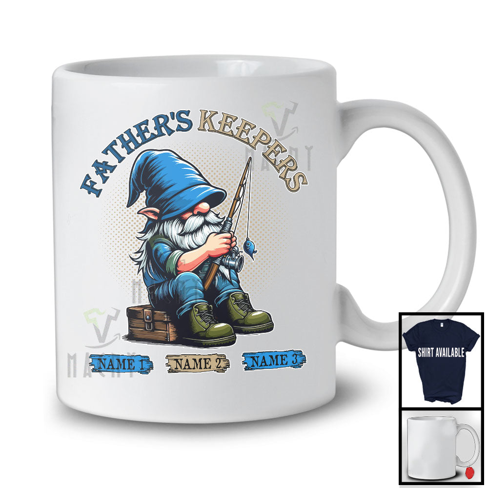 Personalized Father's Keepers, Lovely Father's Day Fishing Gnome, Custom 3 Name Family T-Shirt
