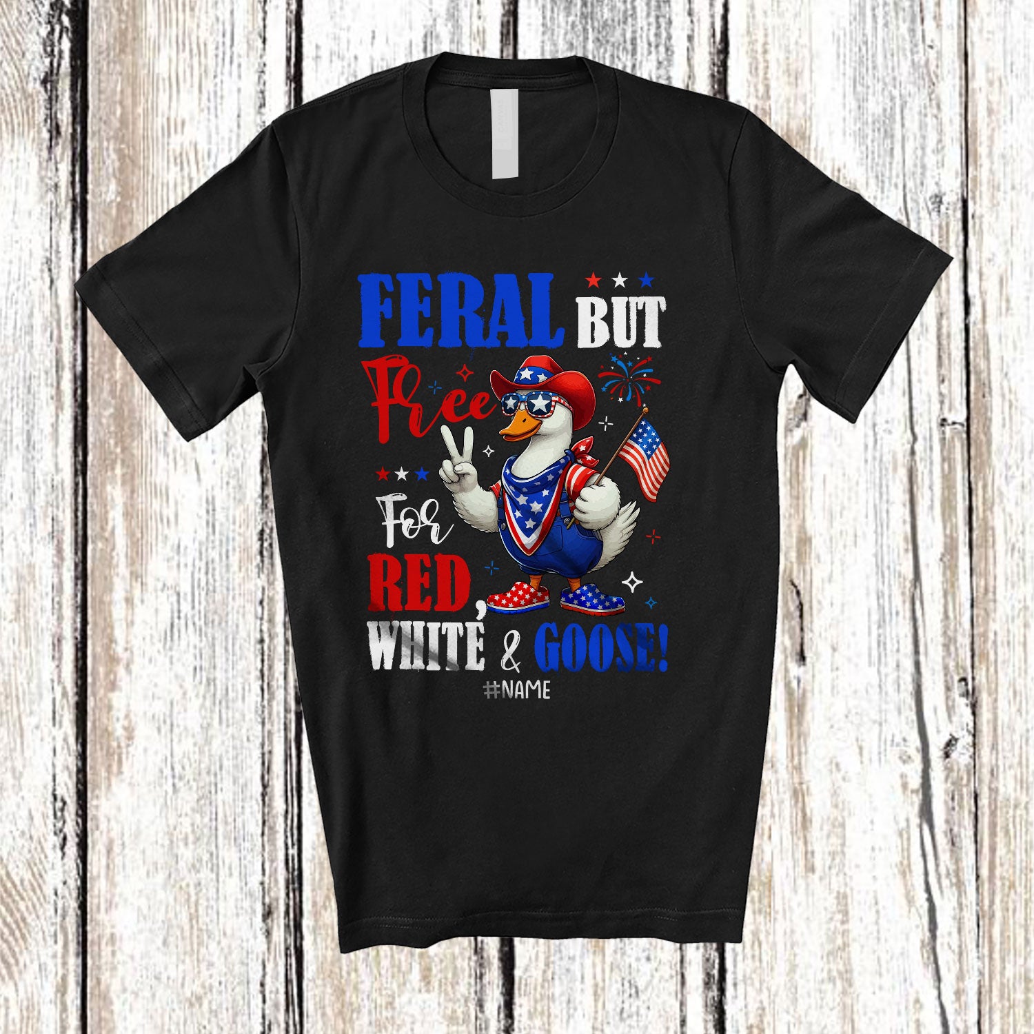 Personalized Feral But Free for Red White Goose; Proud 4th Of July Custom Name Farmer Patriotic T-Shirt