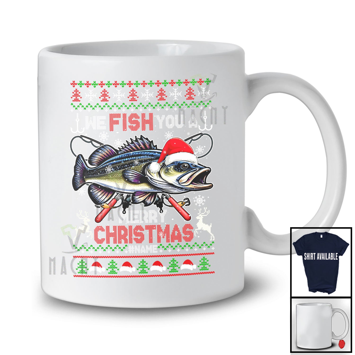 Personalized Fish You A Merry Christmas; Fantastic Sweater Santa Bass Fish; Custom Name Fishing T-Shirt