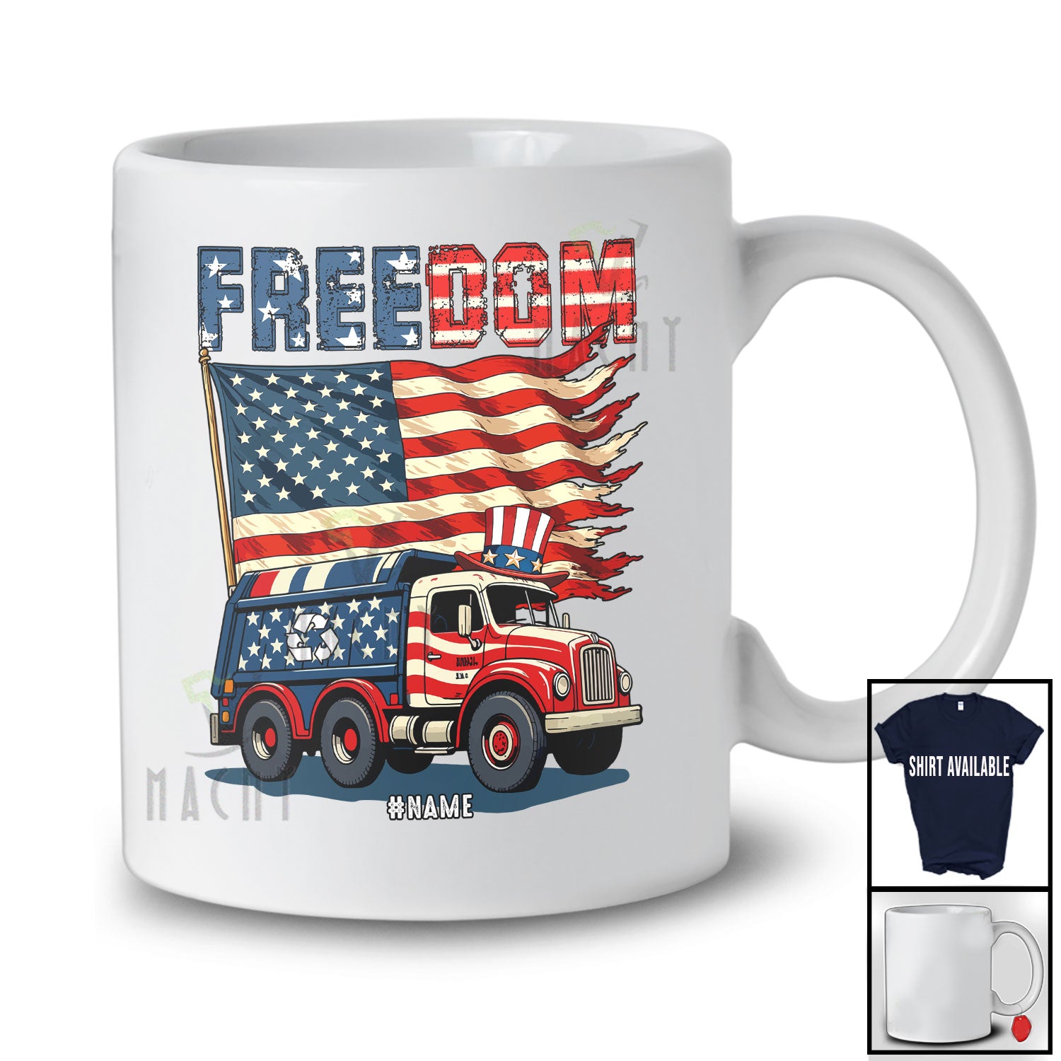 This Personalized Freedom; Awesome 4th Of July American Flag Custom Name Garbage Truck; Patriotic T-Shirt is great idea gift for your family, friends in this birthday, christmas, mother's day, father's day, patrick's day or any holiday.