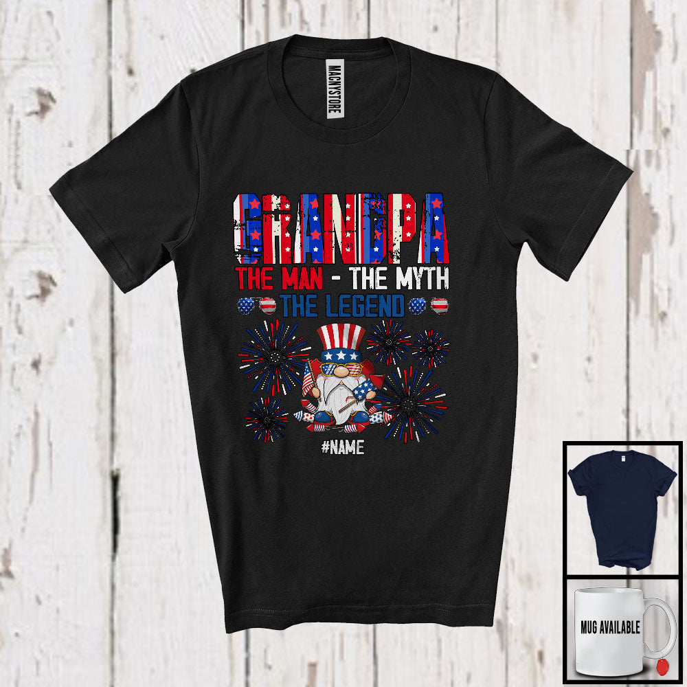 Personalized Gnome Custom Name Grandpa Myth Legend, Proud 4th Of July USA Patriotic, Family T-Shirt