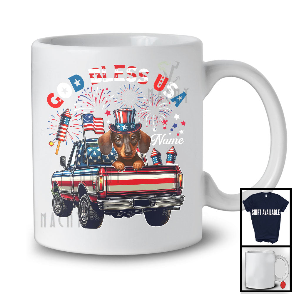 Personalized God Bless USA, Lovely 4th Of July Custom Name Dachshund On Pickup Truck, Patriotic T-Shirt