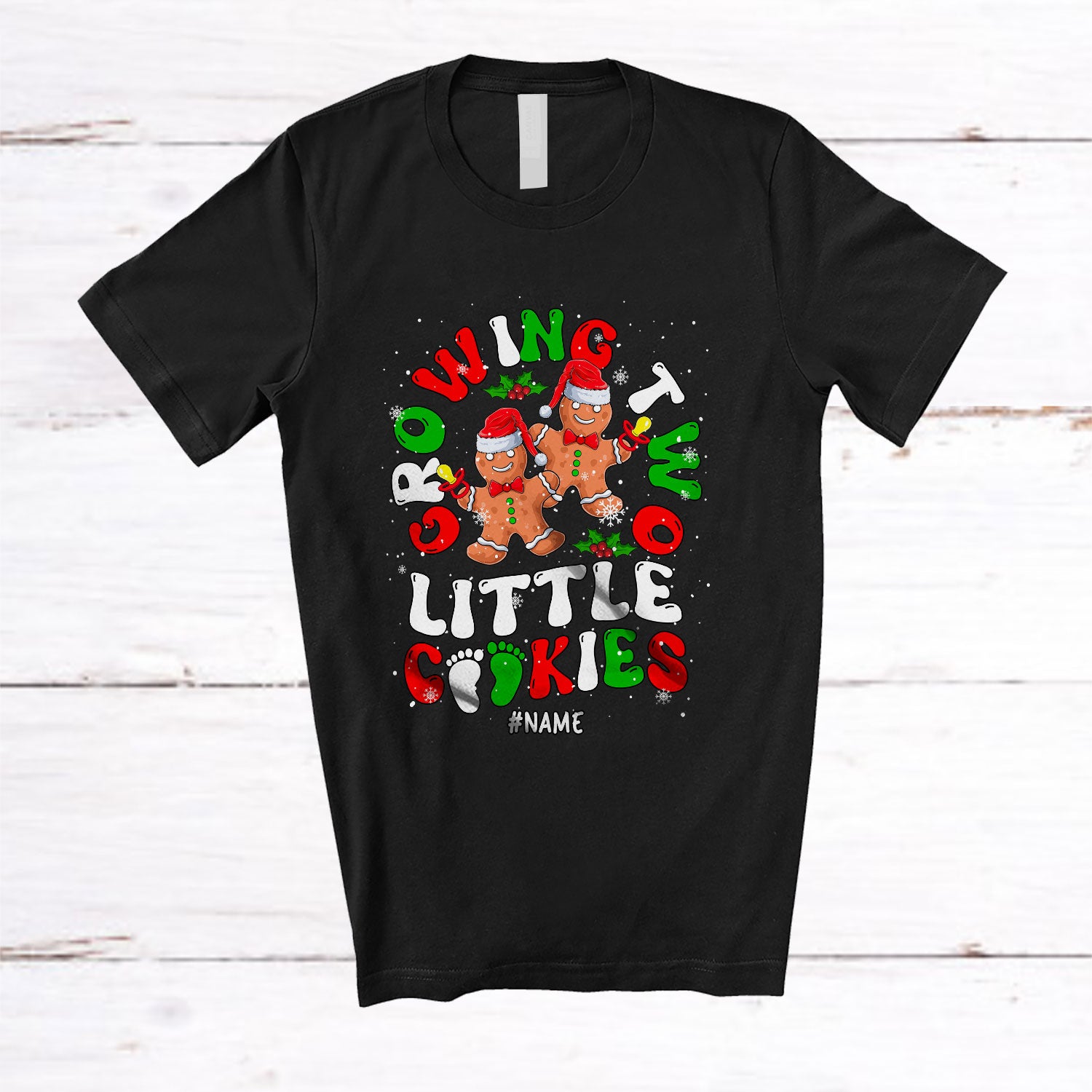 Personalized Growing Two Little Cookies; Amazing Christmas Groovy Gingerbread; Baker Pregnancy T-Shirt. This cotton t-shirt is a durable staple product with a classic fit. One of the most popular items, it has a relaxed style made for everyday and casual wear.