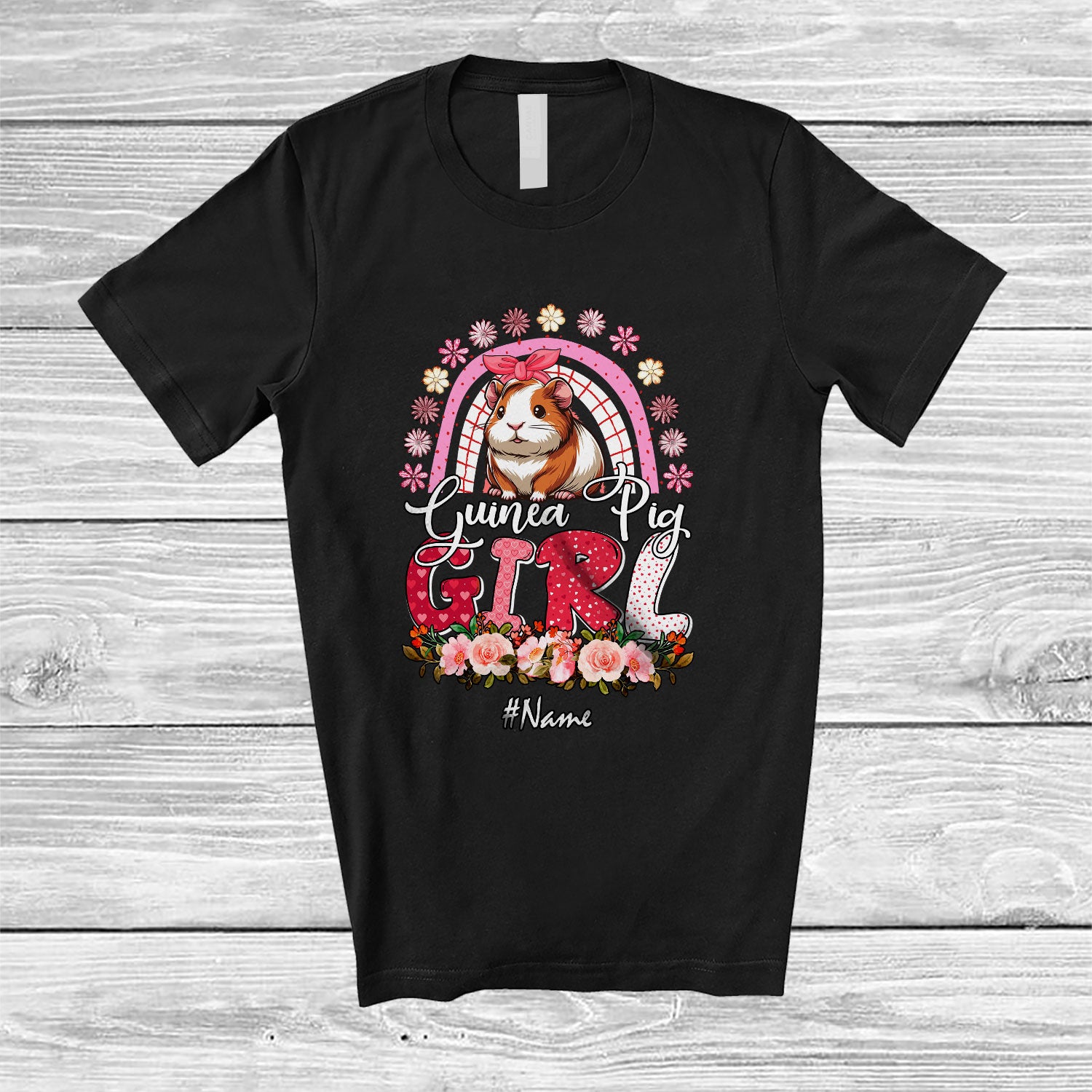 Personalized Guinea Pig Girl; Adorable Mother's Day Flowers Plaid Rainbow; Custom Name Family T-Shirt. This cotton t-shirt is a durable staple product with a classic fit. One of the most popular items, it has a relaxed style made for everyday and casual wear.
