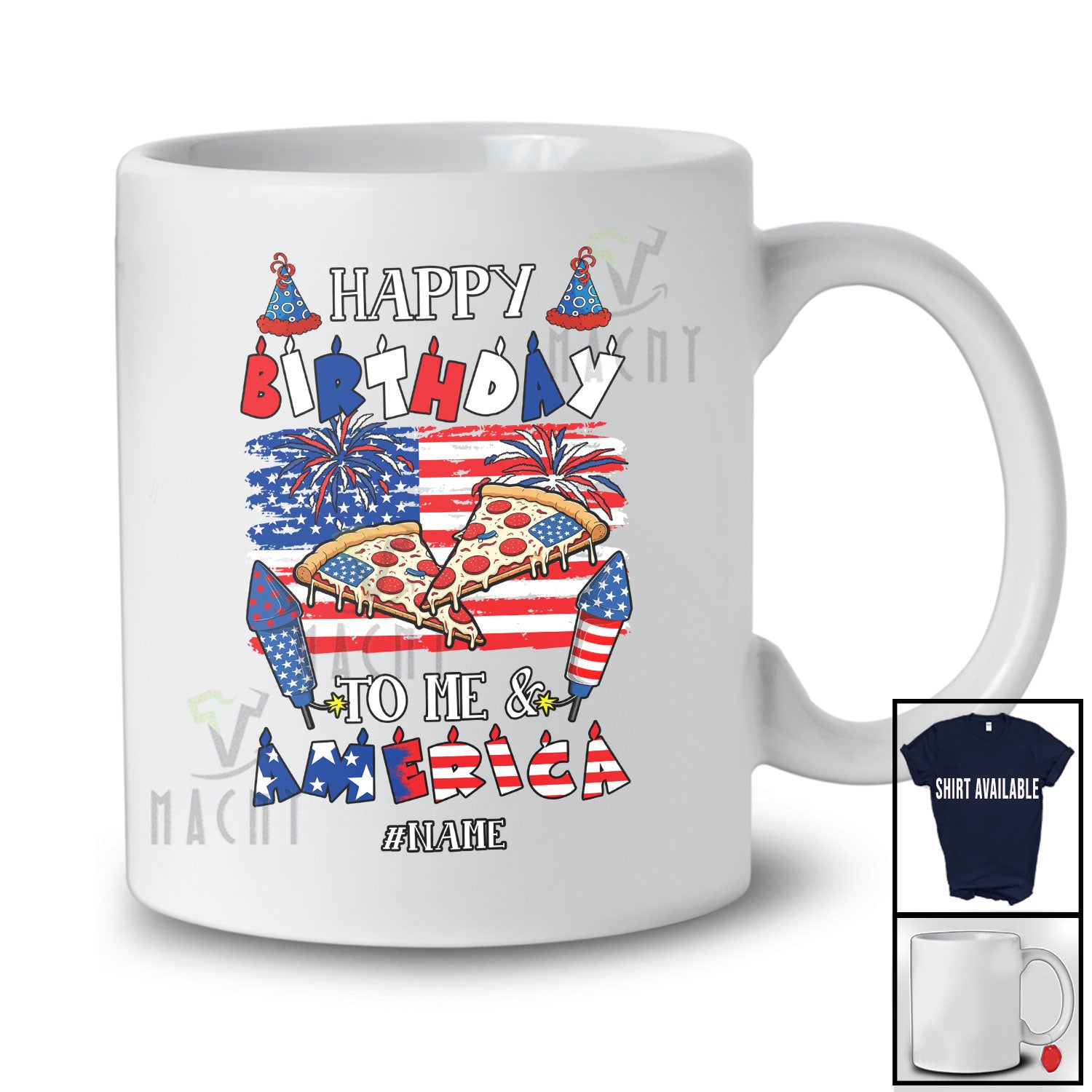 Personalized Happy Birthday America; Lovely 4th Of July Custom Name Pizza; Patriotic T-Shirt. This cotton t-shirt is a durable staple product with a classic fit. One of the most popular items, it has a relaxed style made for everyday and casual wear.