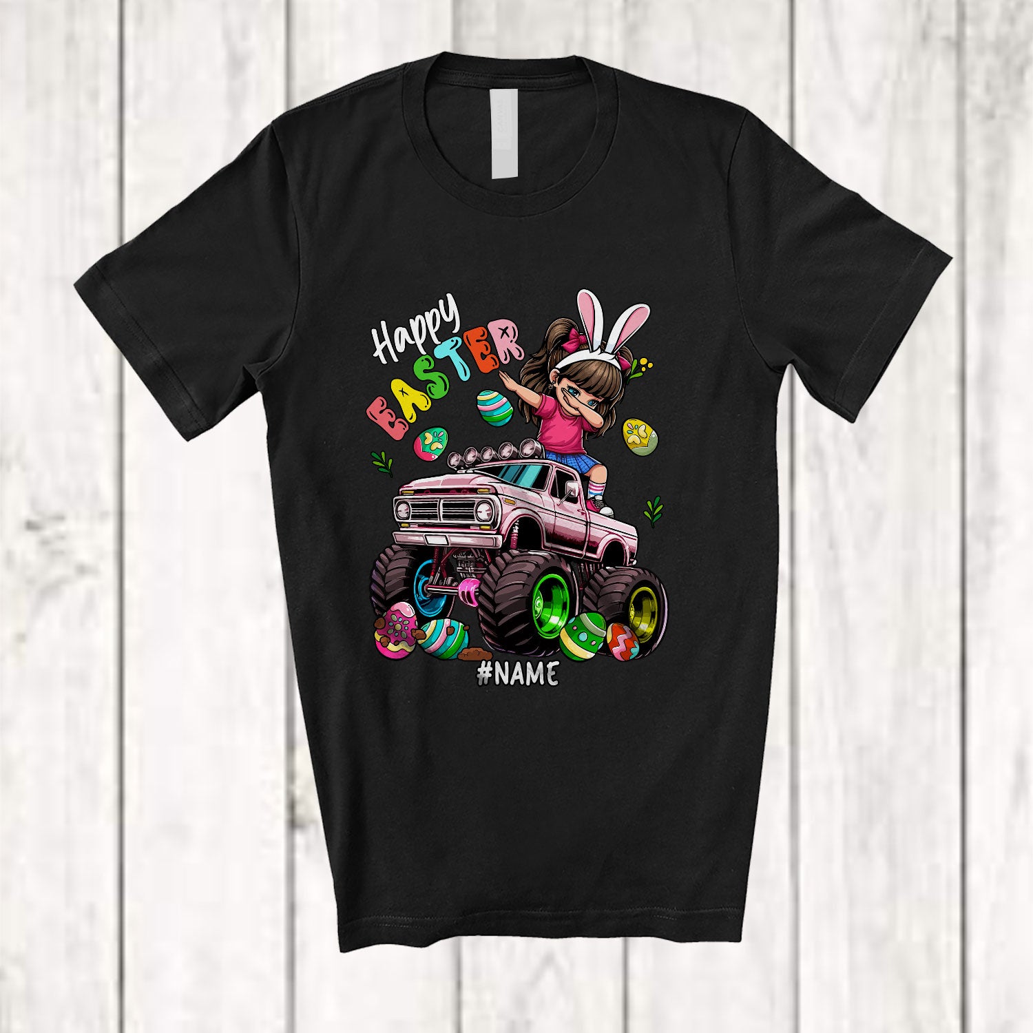 The Personalized Happy Easter; Joyful Easter Day Custom Name Bunny Dabbing Girl Monster Truck T-Shirt was built with people like you in mind. Something to keep you happy. Every. Single. Day.