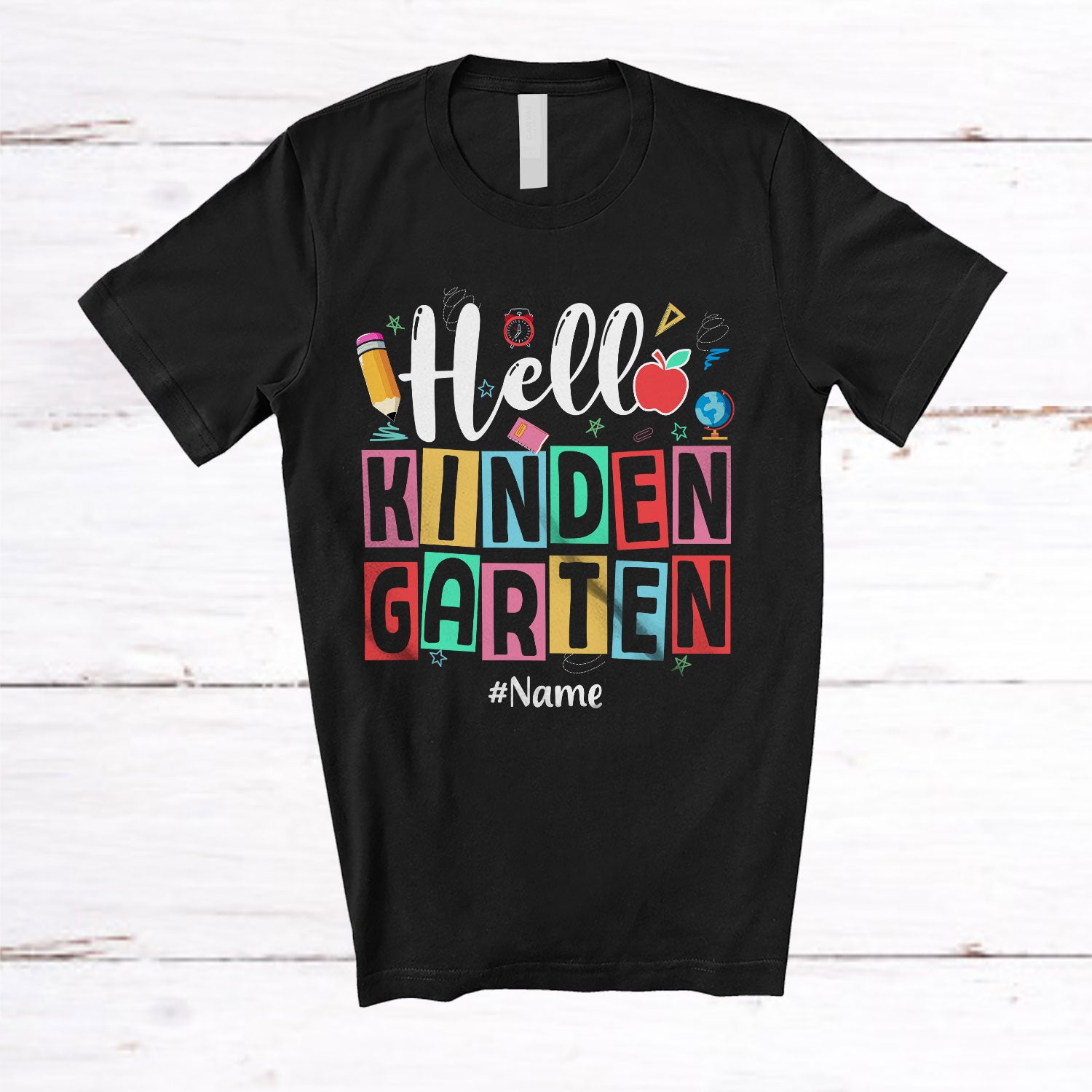 Personalized Hello Kindergarten First Day Of School; Humorous Custom Name Students Teacher T-Shirt