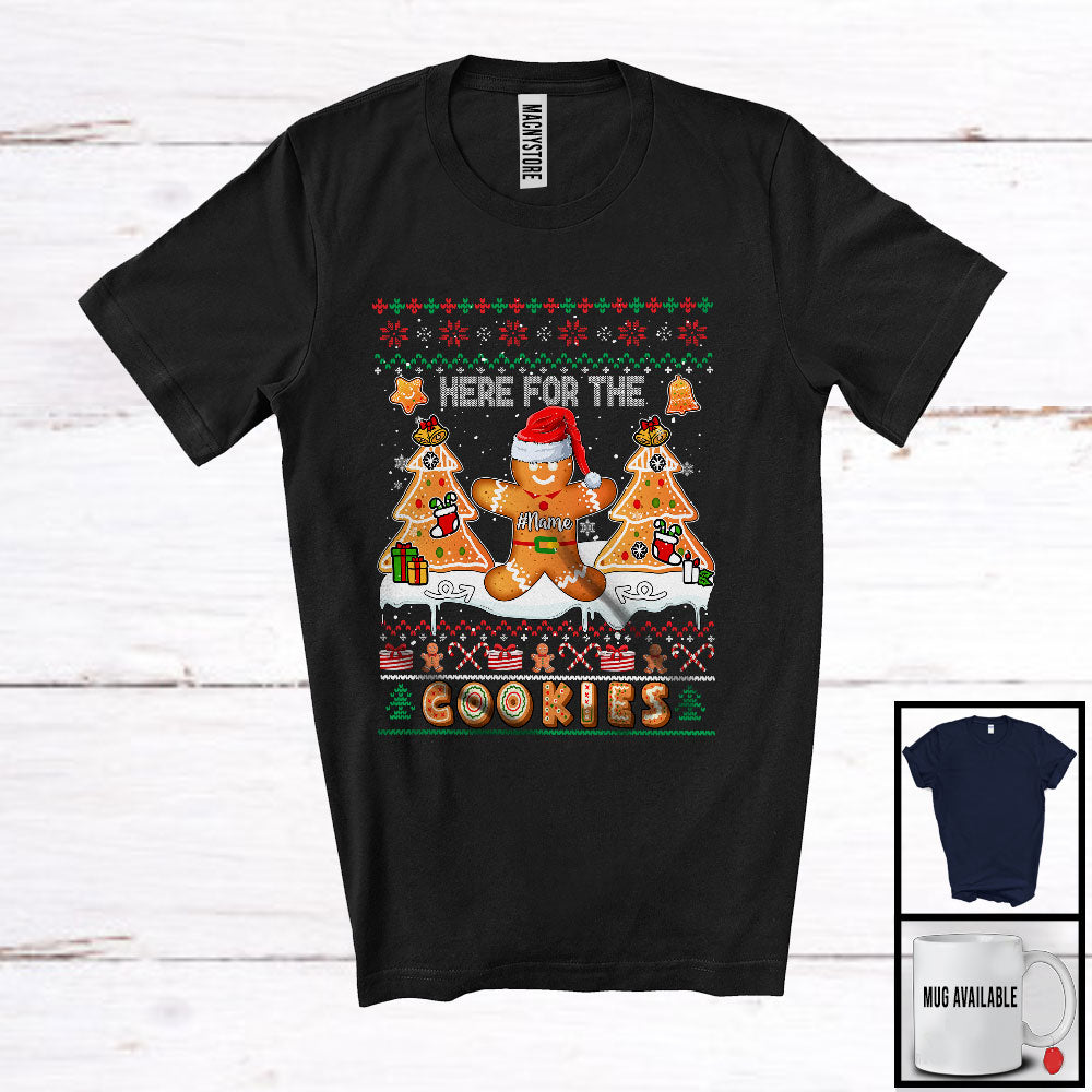 Personalized Here For The Cookies; Amazing Christmas Sweater Custom Name Gingerbread; Baker T-Shirt. This cotton t-shirt is a durable staple product with a classic fit. One of the most popular items, it has a relaxed style made for everyday and casual wear.