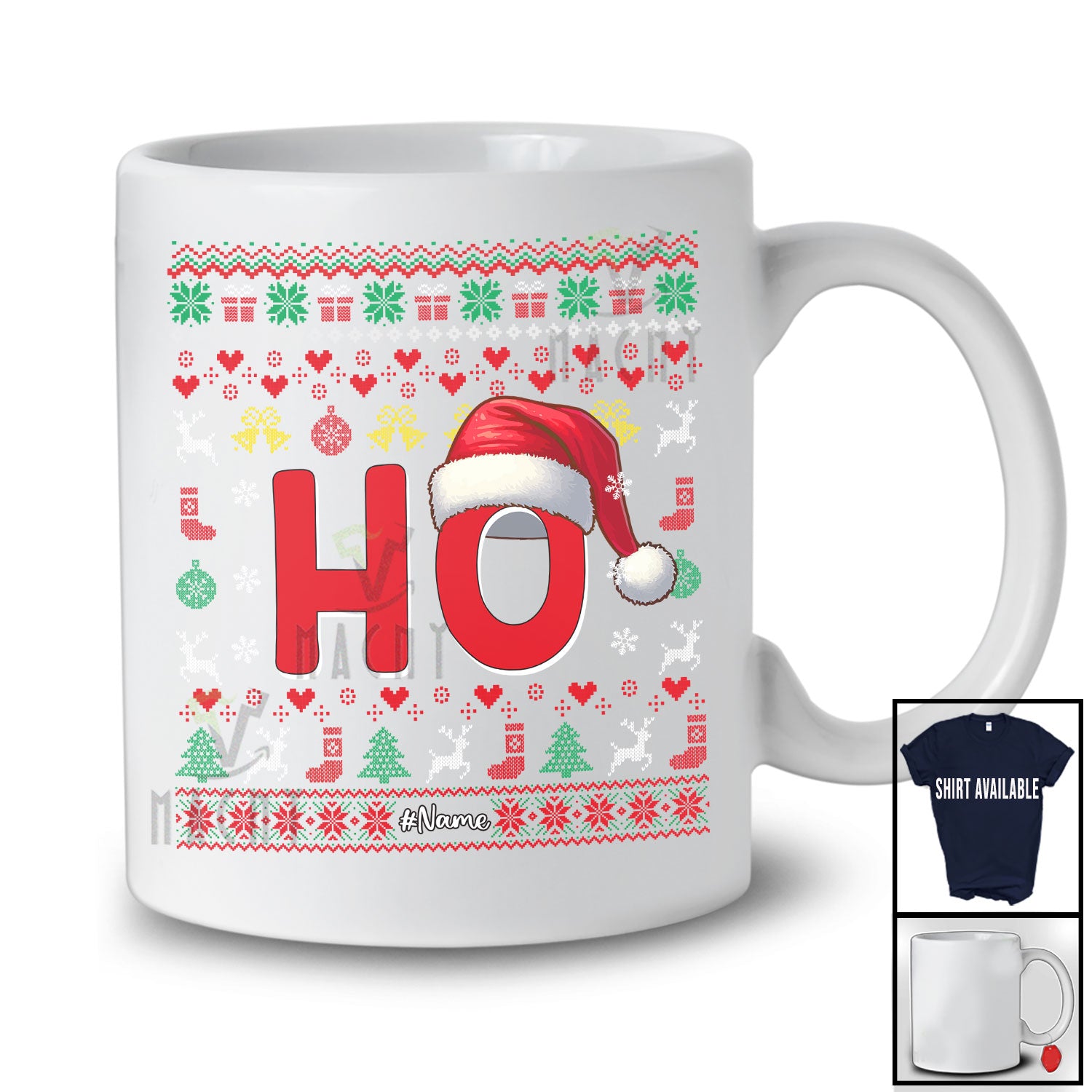 Personalized Ho; Amusing Christmas Sweater Custom Name Santa Lover; X-mas Adult Couple T-Shirt. This cotton t-shirt is a durable staple product with a classic fit. One of the most popular items, it has a relaxed style made for everyday and casual wear.