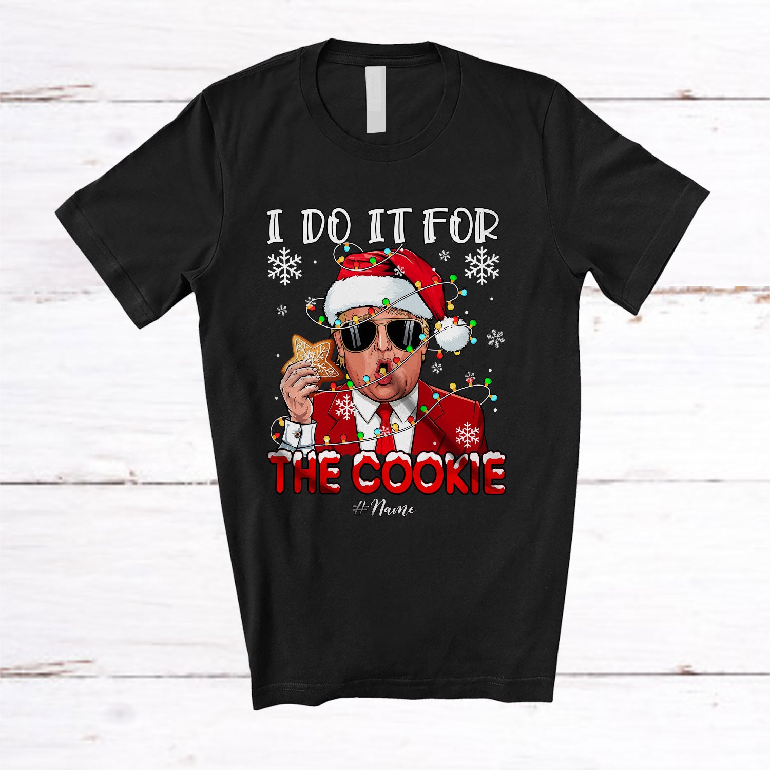 Personalized I Do It For The Cookie; Sarcastic Christmas Naughty Santa Trump; X-mas Custom Name Family T-Shirt