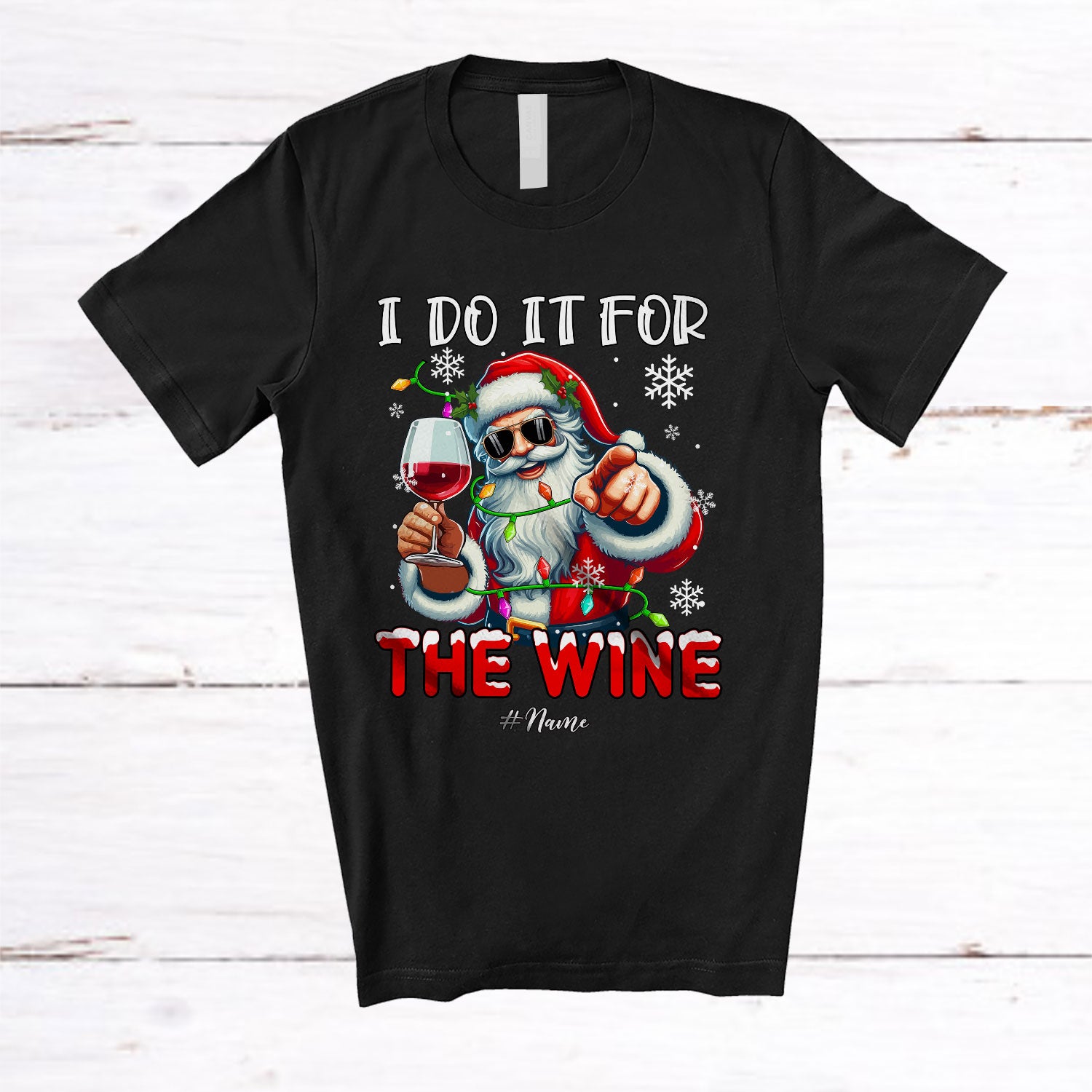 Personalized I Do It For The Wine; Sarcastic Christmas Naughty Santa; X-mas Custom Name Drinking T-Shirt