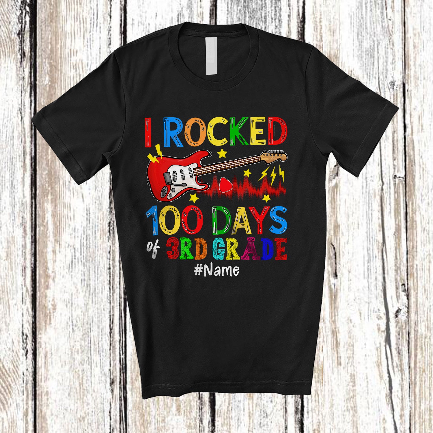• Personalized I Rocked 100th Day of 3rd Grade; Amusing School Bass Guitar; Custom Name Guitarist T-Shirt. This cotton t-shirt is a durable staple product with a classic fit. One of the most popular items, it has a relaxed style made for everyday and casual wear.