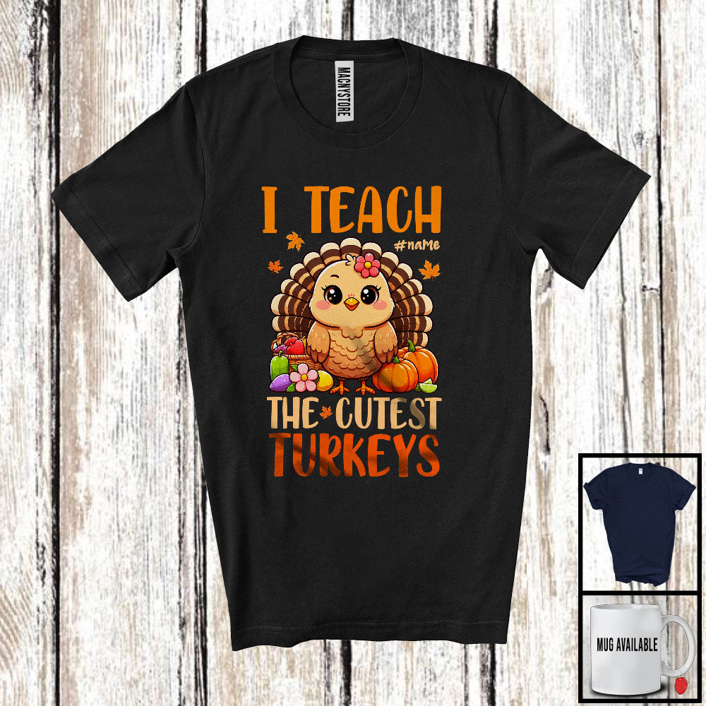 Personalized I Teach The Cutest Turkeys; Lovely Thanksgiving Custom Name Teacher Proud T-Shirt