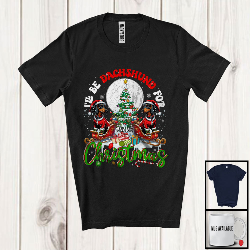 • Personalized I'll Be Dachshund For Christmas, Merry X-mas Tree Lights Custom Name, Snow T-Shirt. This cotton t-shirt is a durable staple product with a classic fit. One of the most popular items, it has a relaxed style made for everyday and casual wear.