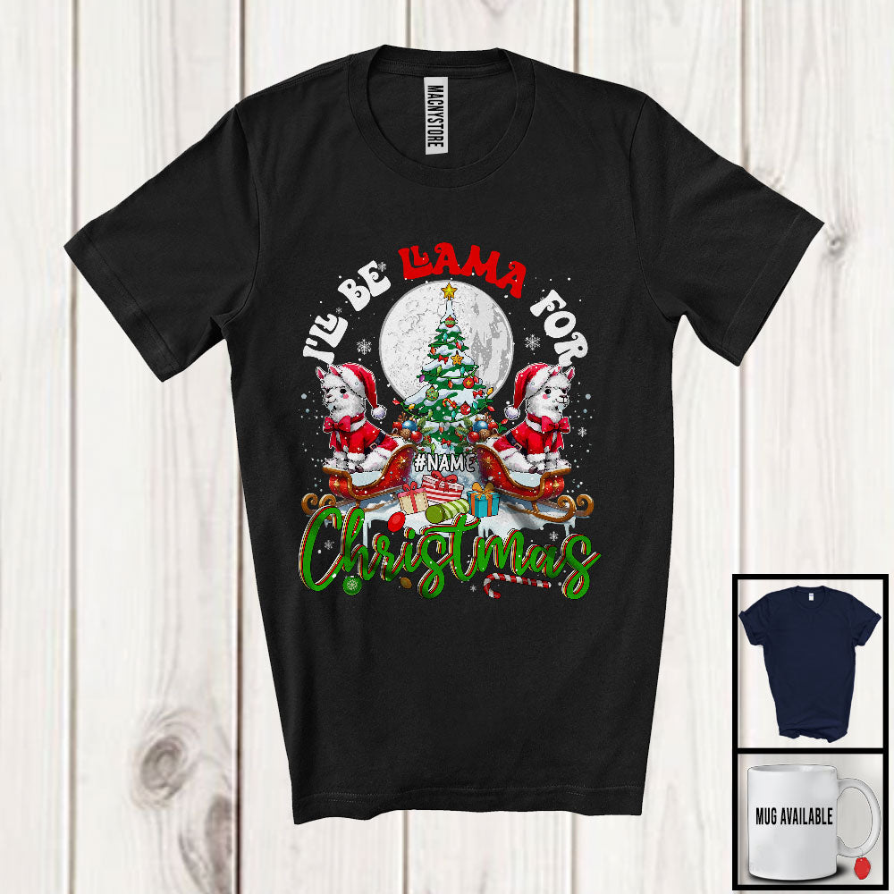Personalized I'll Be Llama For Christmas, Merry X-mas Tree Lights Custom Name Llama, Snow T-Shirt