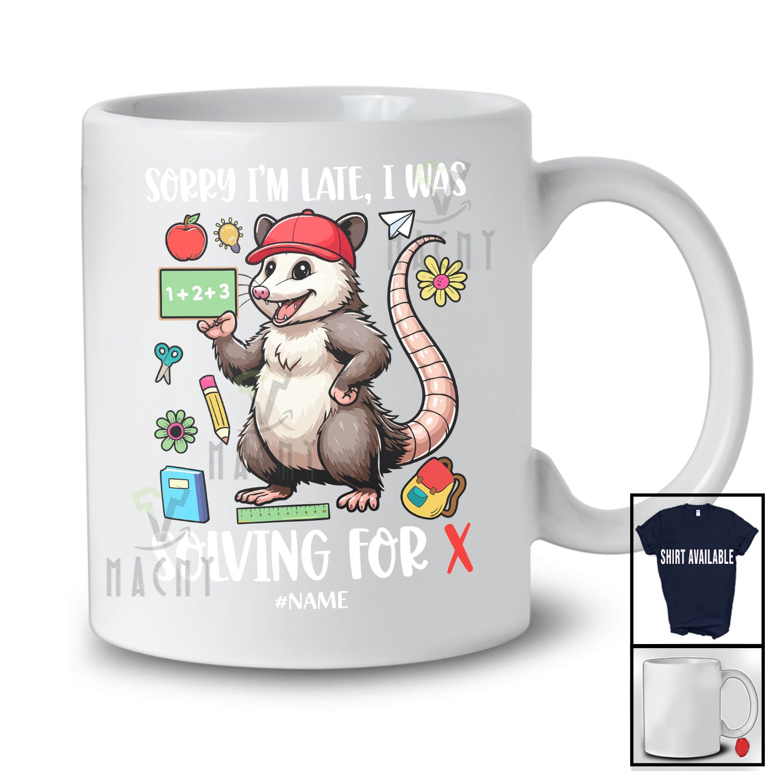 Personalized I'm Late Solving For X; Joyful Back To School Custom Name Math Opossum Teacher T-Shirt. This cotton t-shirt is a durable staple product with a classic fit. One of the most popular items, it has a relaxed style made for everyday and casual wear.