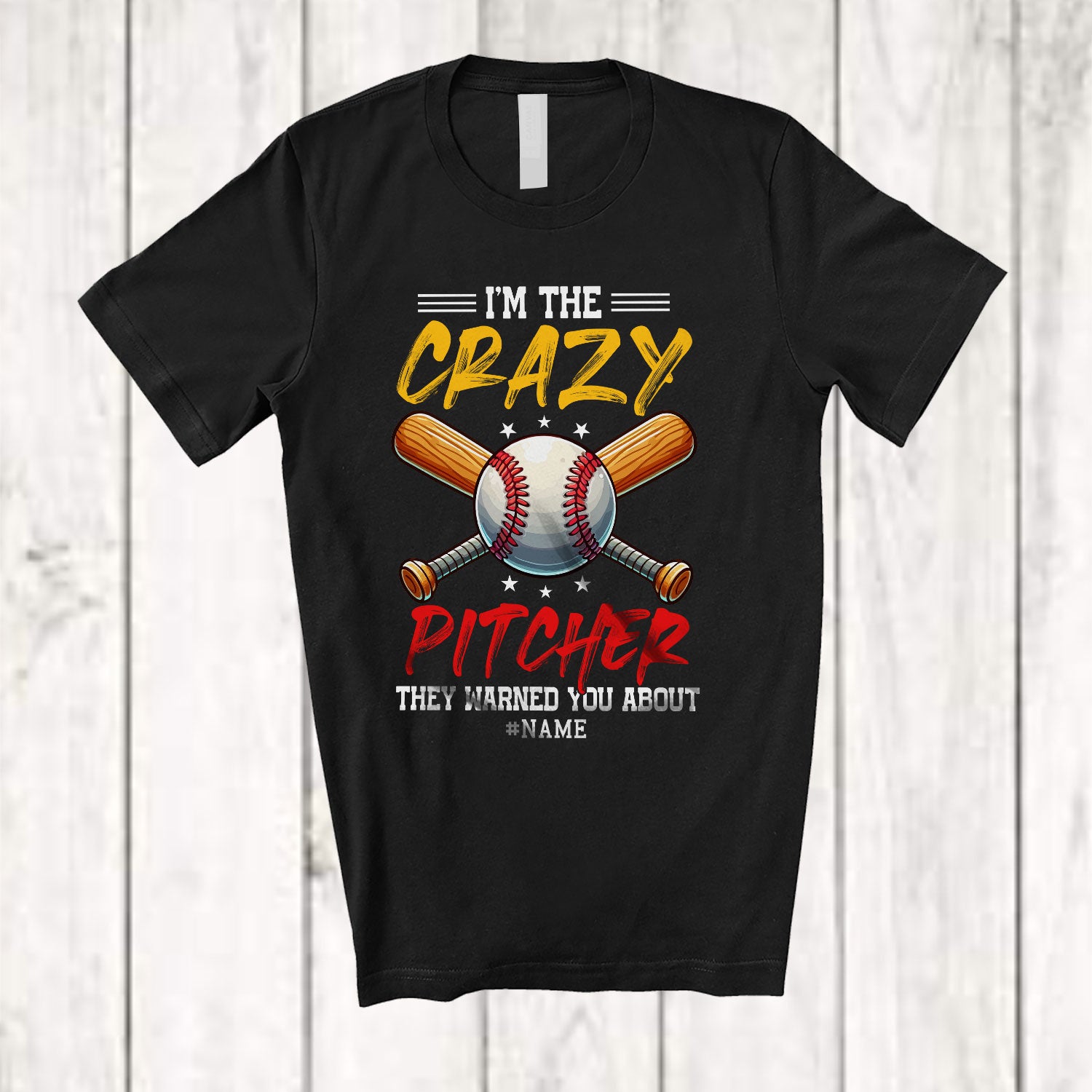 Personalized I'm The Crazy Pitcher They Warned; Humorous Custom Name Baseball Pitcher Player T-Shirt