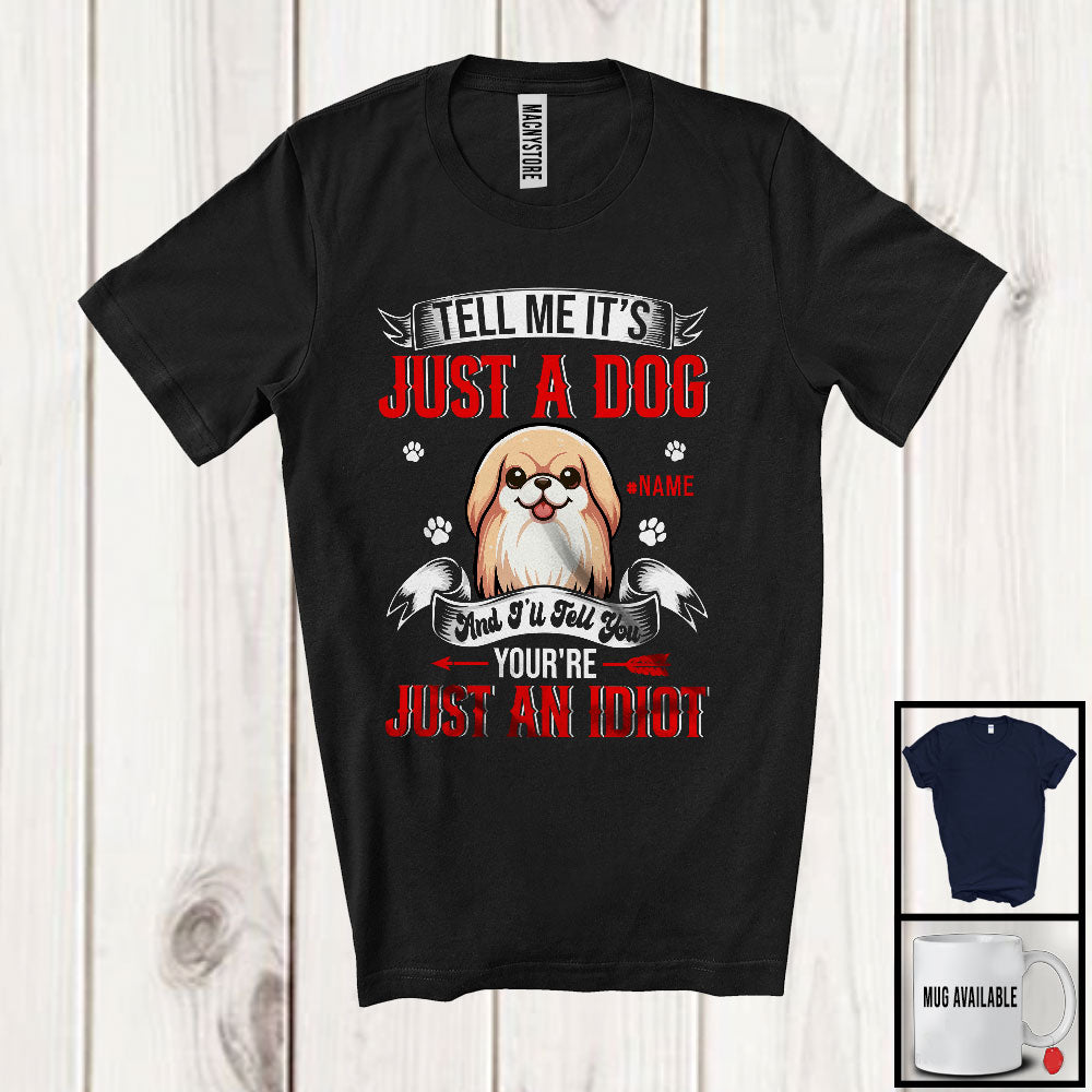 Personalized Just A Dog You're Just An Idiot; Humorous Custom Name Pekingese Owner T-Shirt