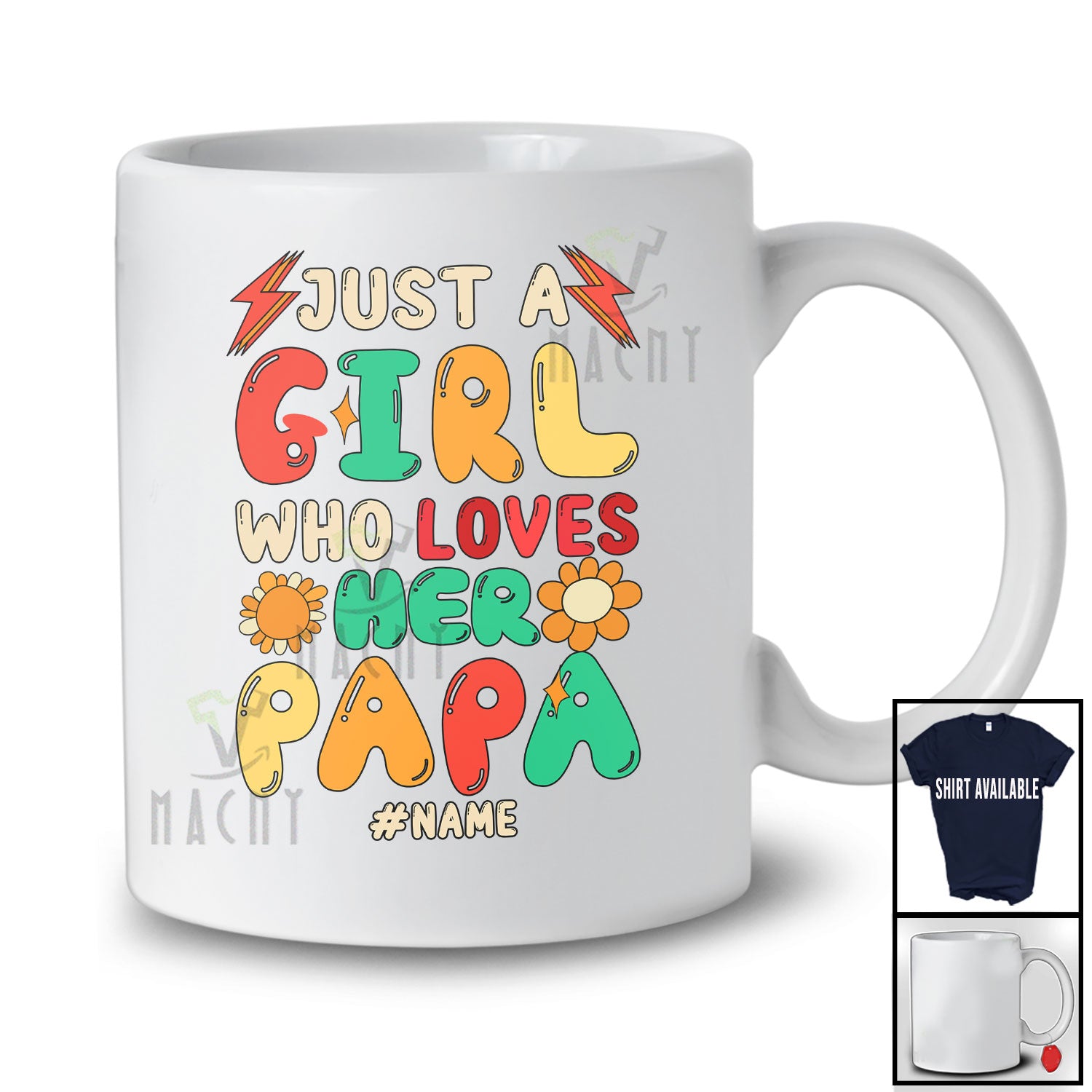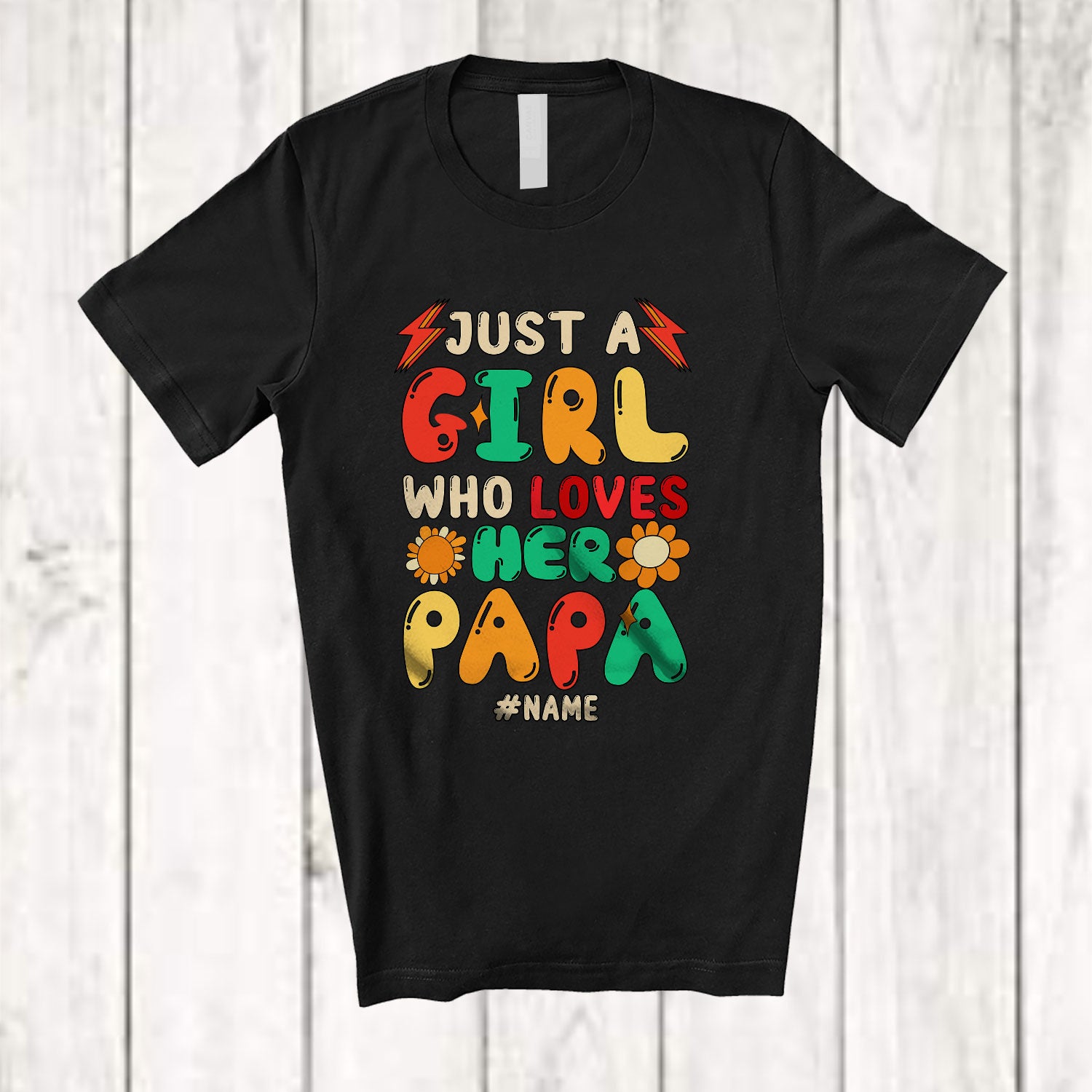 Personalized Just A Girl Who Loves Her Papa; Lovely Father's Day Flowers; Custom Name Family T-Shirt. This cotton t-shirt is a durable staple product with a classic fit. One of the most popular items, it has a relaxed style made for everyday and casual wear.