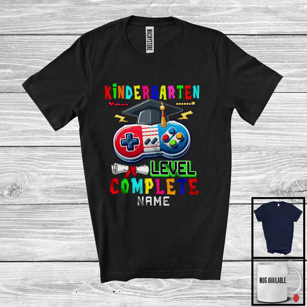 Personalized Kindergarten Level Complete, Joyful Graduation Game Controller, Custom Name Gamer T-Shirt