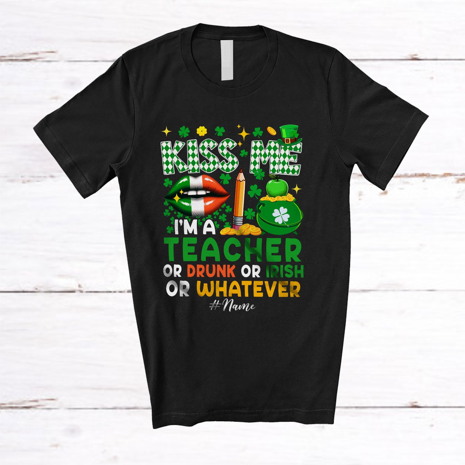 Personalized Kiss Me I'm A Teacher Or Drunk; Joyful St. Patrick's Day Lips; Custom Name Jobs T-Shirt