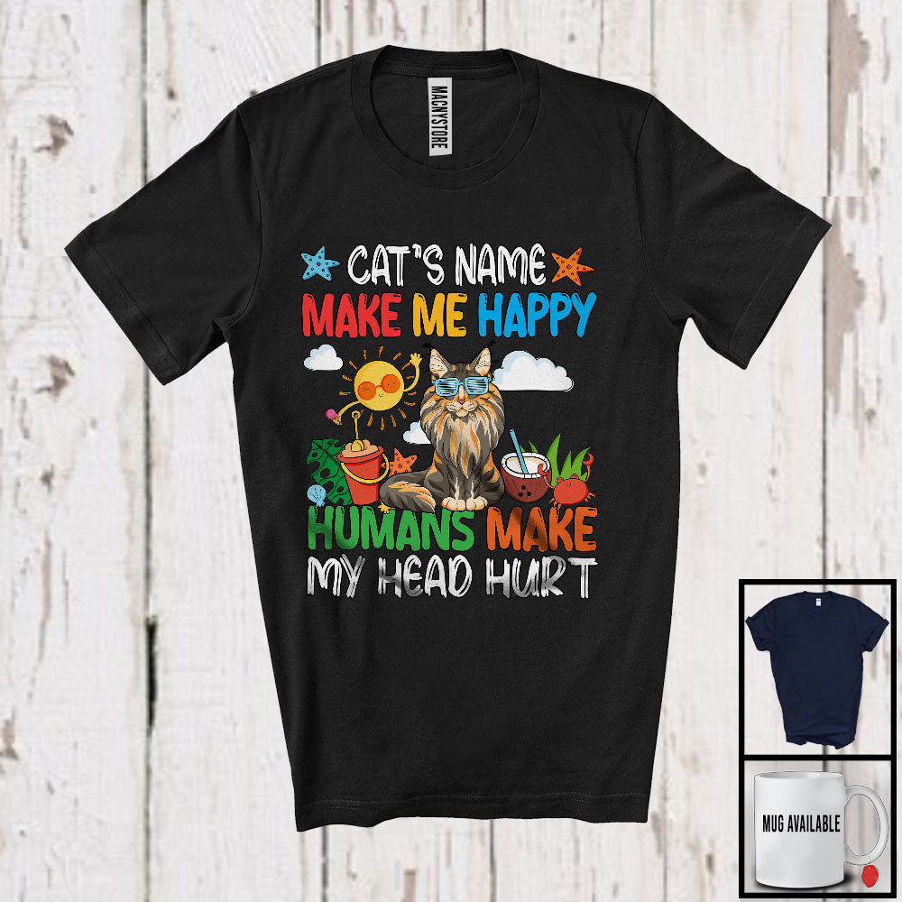 Personalized Kitten's Custom Name Make Me Happy, Colorful Summer Vacation Maine Coon Owner T-Shirt