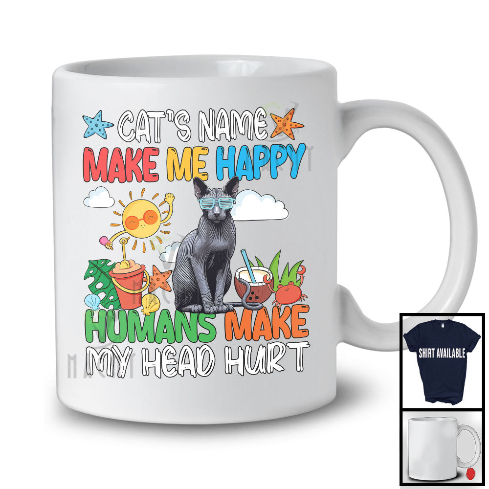 Life is too short to live without the Personalized Kitten's Custom Name Make Me Happy, Colorful Summer Vacation Peterbald Owner T-Shirt. Be happy. Be Content. Be Satisfied.
