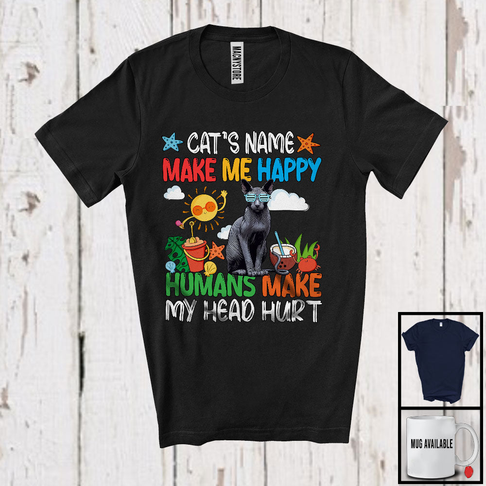 This Personalized Kitten's Custom Name Make Me Happy, Colorful Summer Vacation Peterbald Owner T-Shirt is great idea gift for your family, friends in this birthday, christmas, mother's day, father's day, patrick's day or any holiday.