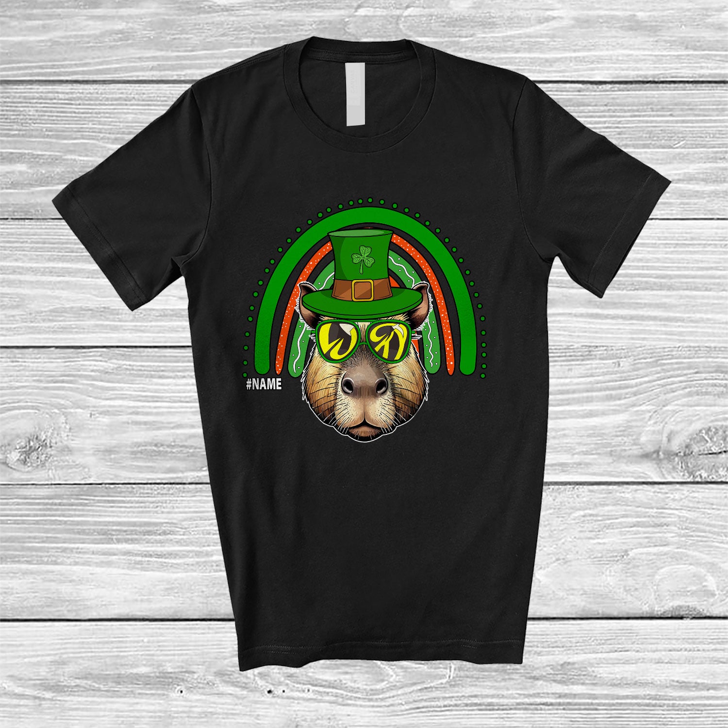 • Personalized Leprechaun Capybara Face Sunglasses; Joyful St. Patrick's Day Custom Name Capybara Irish T-Shirt. This cotton t-shirt is a durable staple product with a classic fit. One of the most popular items, it has a relaxed style made for everyday and casual wear.
