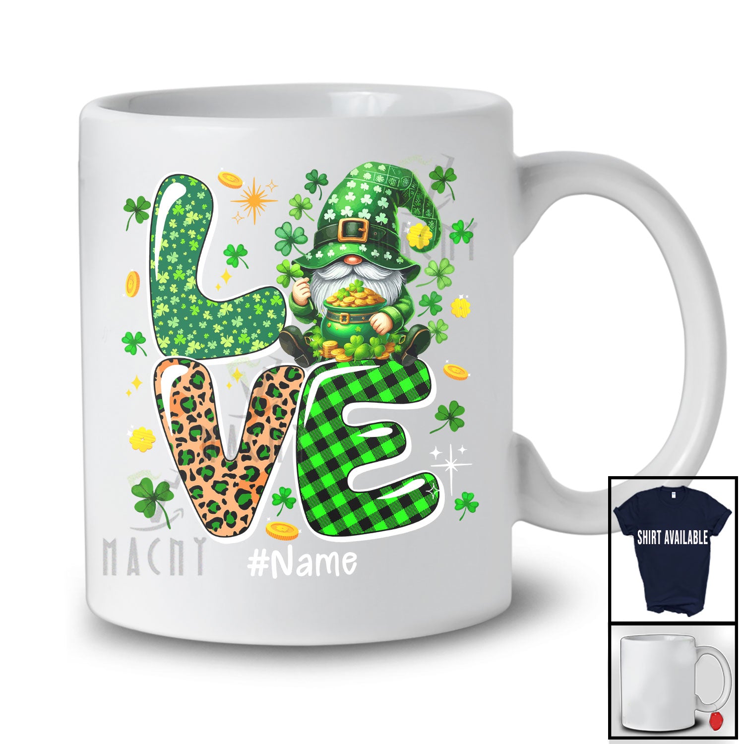 new MacnyStore - Personalized LOVE; Adorable St. Patrick's Day Custom Name Gnome; Leopard Plaid Shamrock T-Shirt – Macnystore