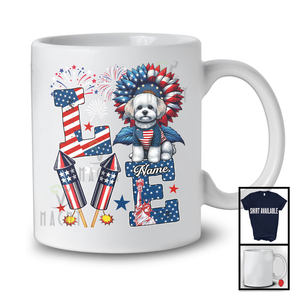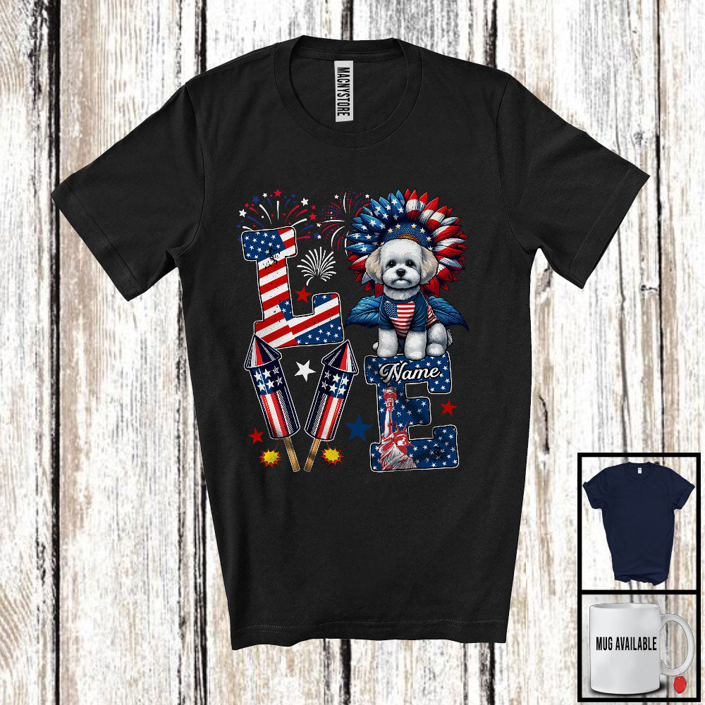 Personalized Love, Lovely 4th Of July Custom Name Maltese, Sunflower US Flag Patriotic T-Shirt