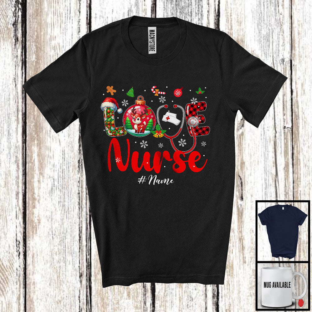 Personalized LOVE Nurse; Amazing Christmas Plaid Ornament; Custom Name Nurse T-Shirt. This cotton t-shirt is a durable staple product with a classic fit. One of the most popular items, it has a relaxed style made for everyday and casual wear.