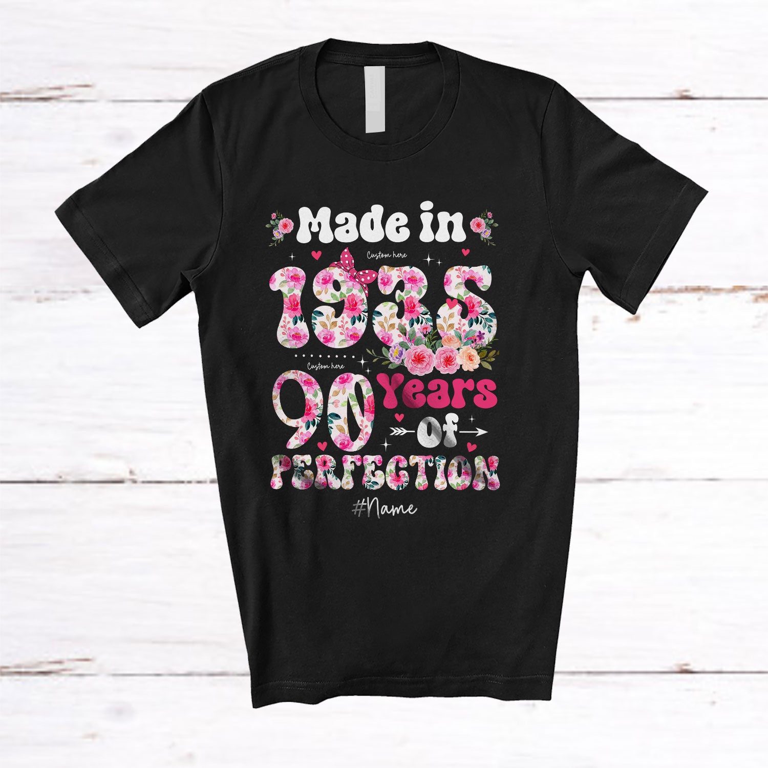 Personalized Made In 1935 Perfection; Floral Custom Name 90th Birthday 90 Years Old; Flowers T-Shirt