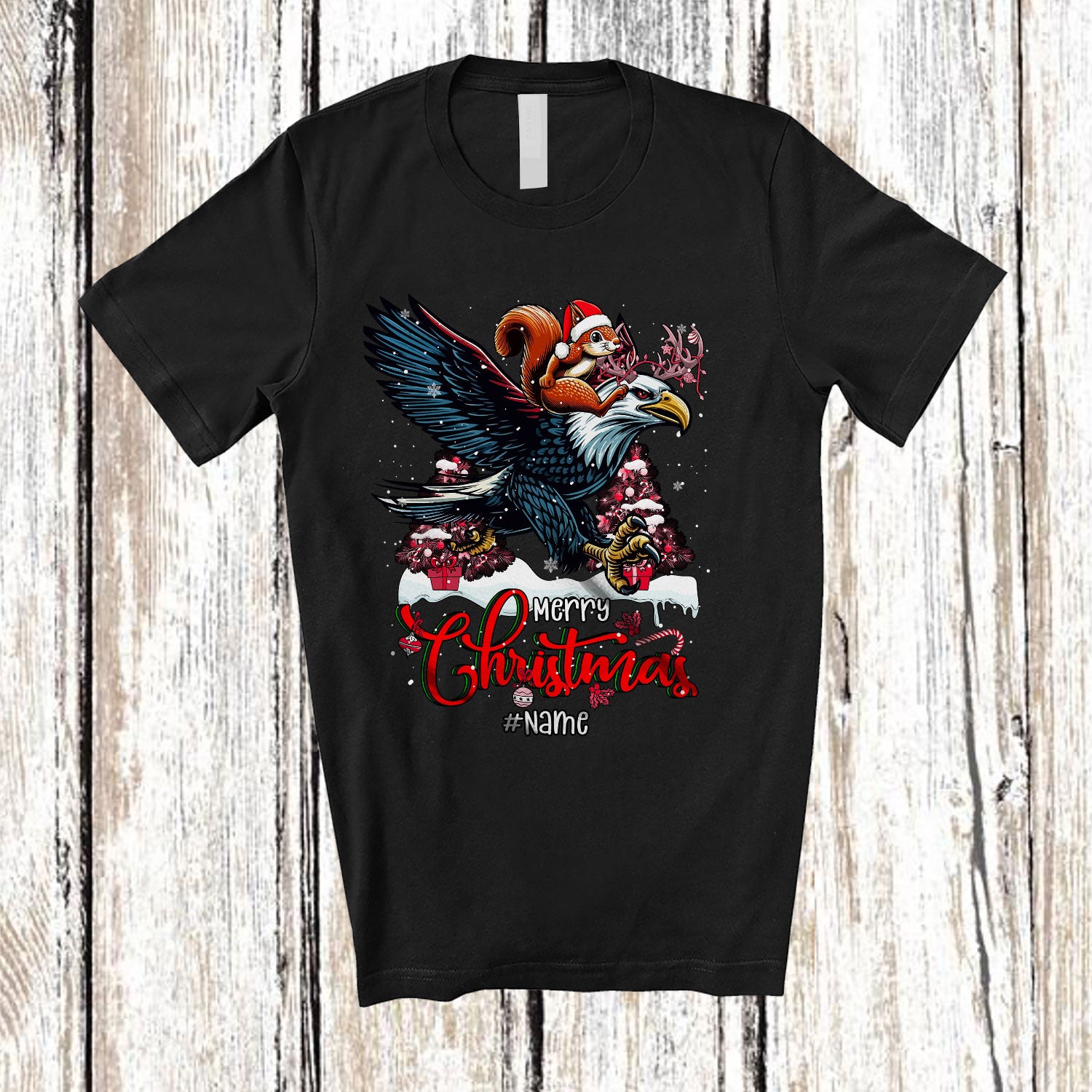 Personalized Merry Christmas; Lovely Custom Name Santa Squirrel Riding Eagle Reindeer T-Shirt