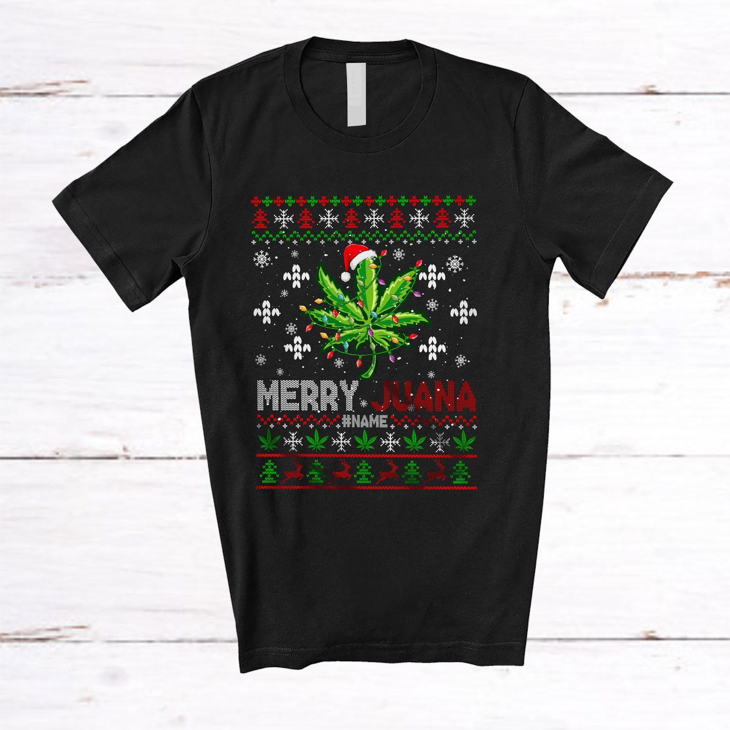 Personalized Merry Juana; Fantastic Christmas Sweater 420 Leaf; Custom Name Smoker Smoking T-Shirt