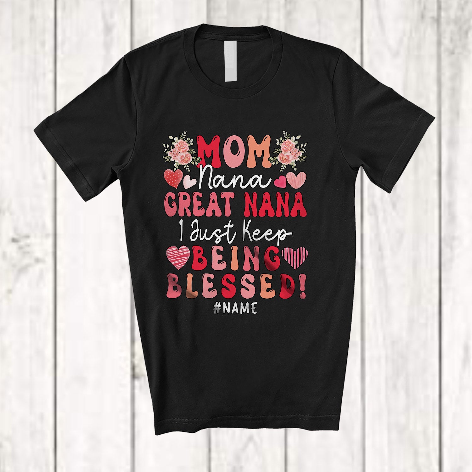 Personalized Mom Nana Great Nana Keep Blessed; Proud Mother's Day Hearts; Custom Name Family T-Shirt