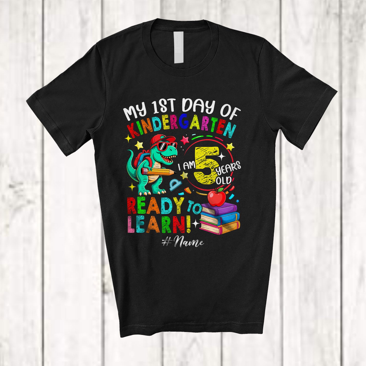 Personalized My 1st Day Of Kindergarten; Lovely First Day Back To School Custom Name T-Rex T-Shirt