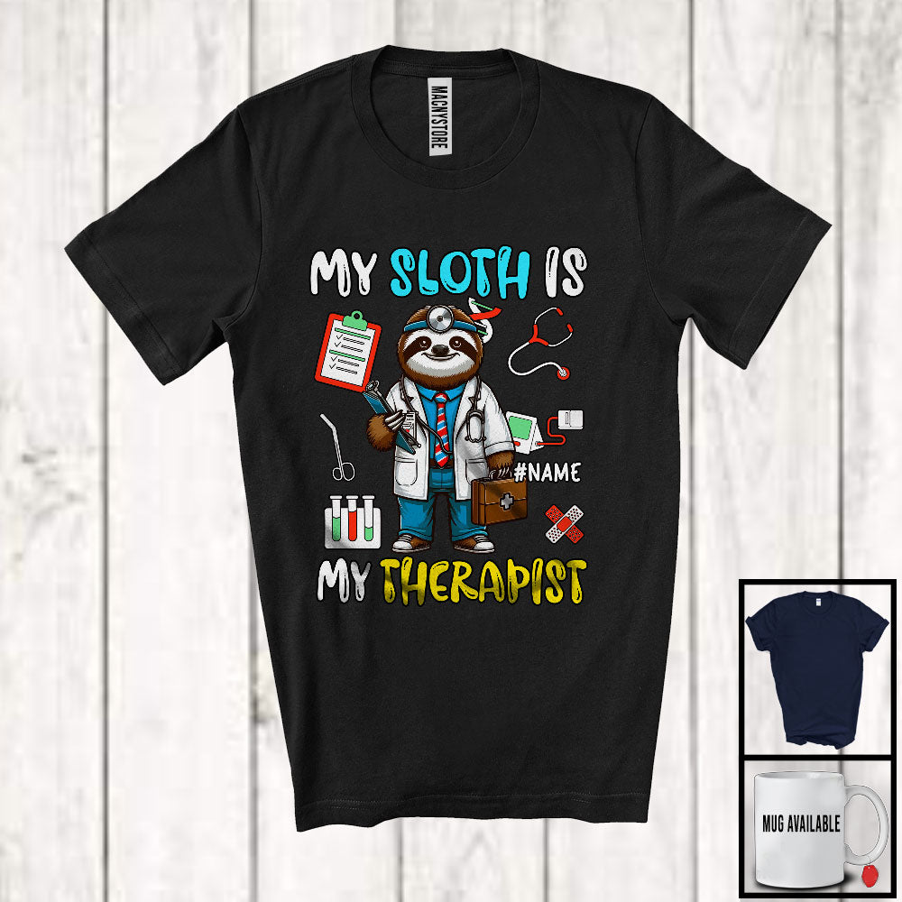 Personalized My Sloth Is My Therapist, Lovely Nursing Sloth, Custom Name Nurse Doctor Group T-Shirt
