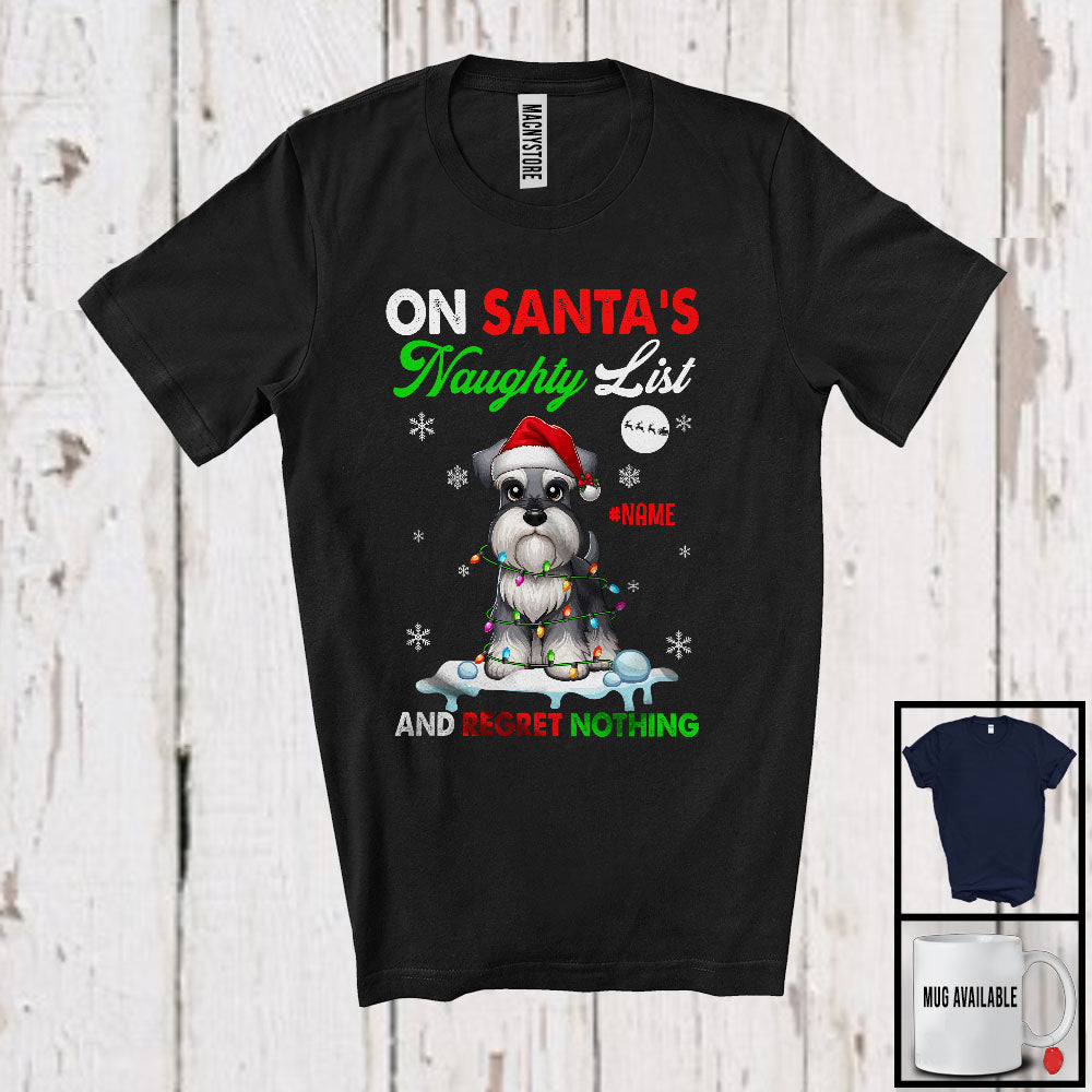 new MacnyStore - Personalized On Santa's Naughty List; Lovely Christmas Custom Name Schnauzer Owner T-Shirt – Macnystore
