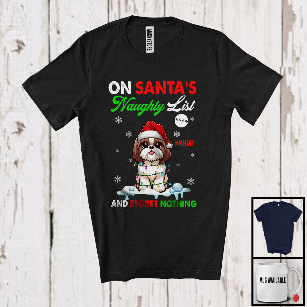 Personalized On Santa's Naughty List; Lovely Christmas Custom Name shih Tzu Owner T-Shirt