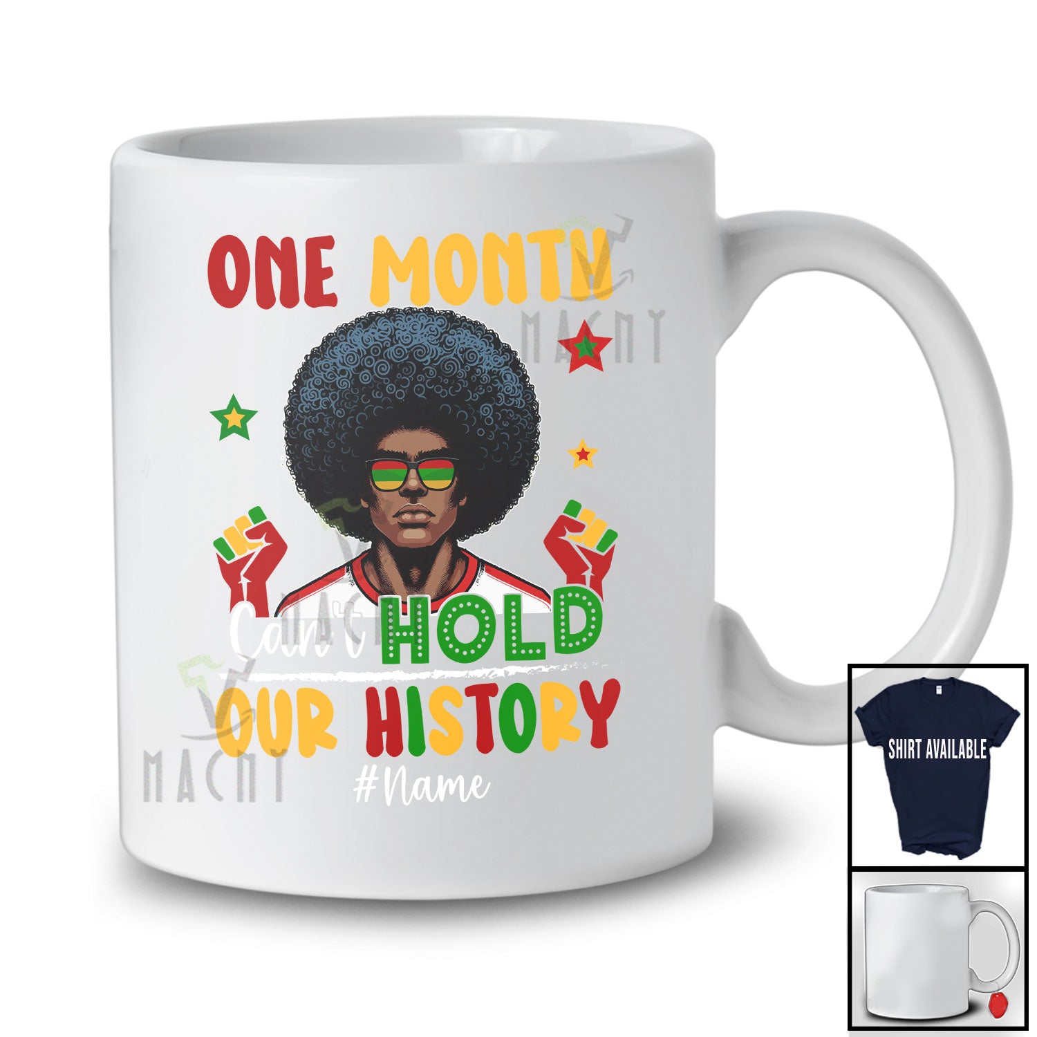 Personalized One Month Can't Hold Our Story; Proud Black History Juneteenth Custom Name Men Afro T-Shirt. This cotton t-shirt is a durable staple product with a classic fit. One of the most popular items, it has a relaxed style made for everyday and casual wear.