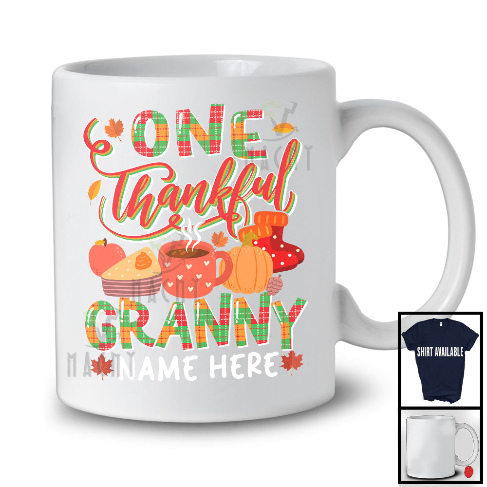 Personalized One Thankful Granny, Lovely Thanksgiving Plaid Pumpkin Coffee, Custom Name Family T-Shirt